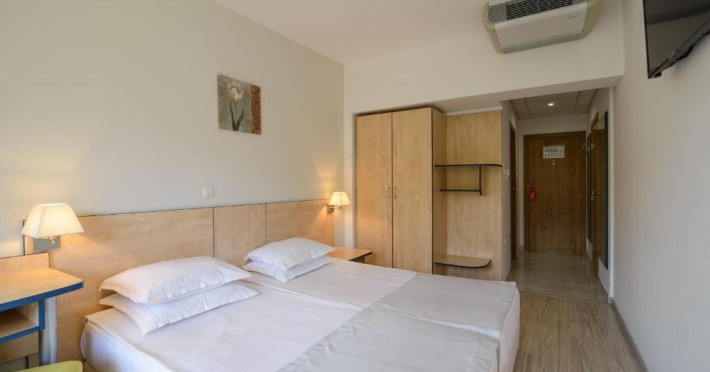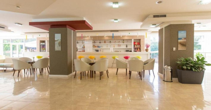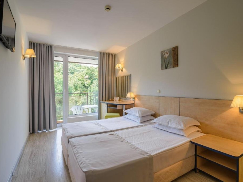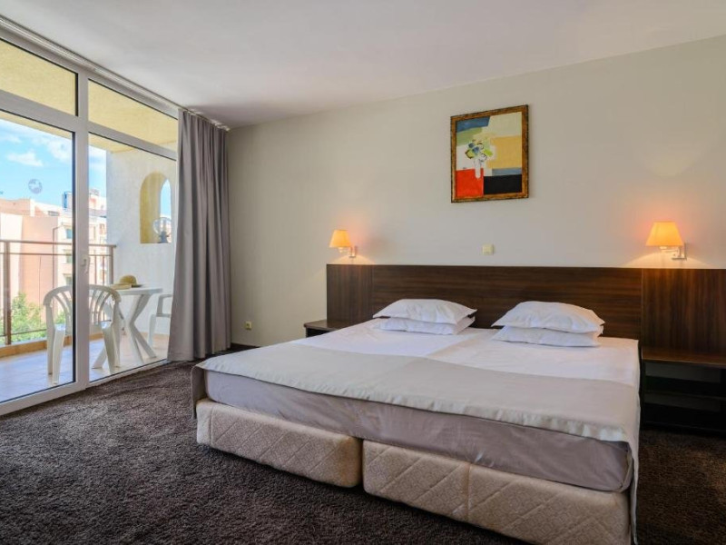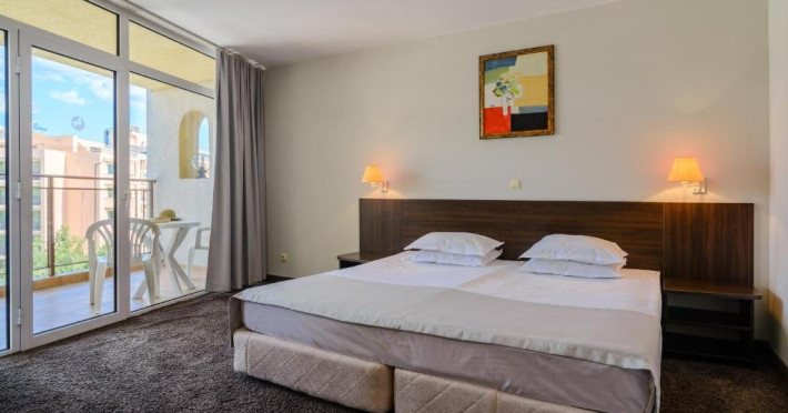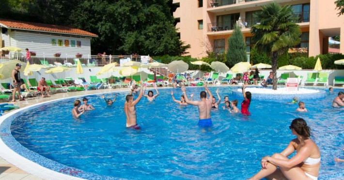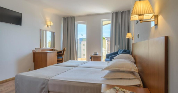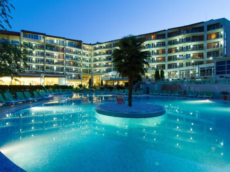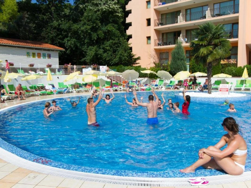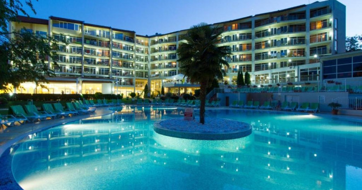 Localizare: Hotelul este situat la 350 m de plaja si la 300 m de centrul statiunii Nisipurile de Aur. Informatii hotel: Hotelul are lobby bar, restaurant principal, restaurant a la carte, sala de conferinte, piscina interioara, piscina exterioara, bar la piscina, centru medical, fitness, coafor, seif contra cost, WI-FI gratuit in locurile publice. Servicii masa: All Inclusive Servicii cazare: Camere duble standard, camere duble superior, toate fiind dotate cu telefon, TV satelit, aer conditionat, seif contra cost, baie cu dus, feon, balcon Facilitati copii: Piscina cu sectiune pentru copii, mini club, animatie, scaune speciale pentru bebelusi in restaurant, patuturi pentru bebelusi contra cost, jocuri electronice contra cost. Sport si activitati: Gratuit: piscina exterioara, piscina interioara incalzita, loc de joaca multifunctional - volei, baschet, mini fotbal, fitness, masa de tenis, darts, biliard, boccia, tras cu arcul, animatie. Contra cost: Sauna, masaj, hidromasaj. Se accepta animale de companie pana in 5 kg contracost - 5 euro/zi. Parcare: Contracost . Grad maxim ocupare camere: In camera single - 1 adult; in camera dubla - 2 adulti; in camera dubla superior- 2 adulti + 1 copil/3 adulti; in junior suite - 2 adulti + 2 copii; in family room - 2 adulti + 2 copii sau 4 adulti; in apartament - 2 adulti + 2 copii/ 3 adulti + 1 copil