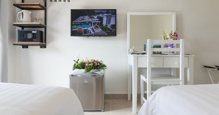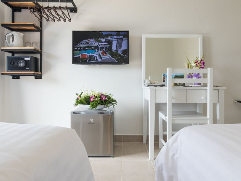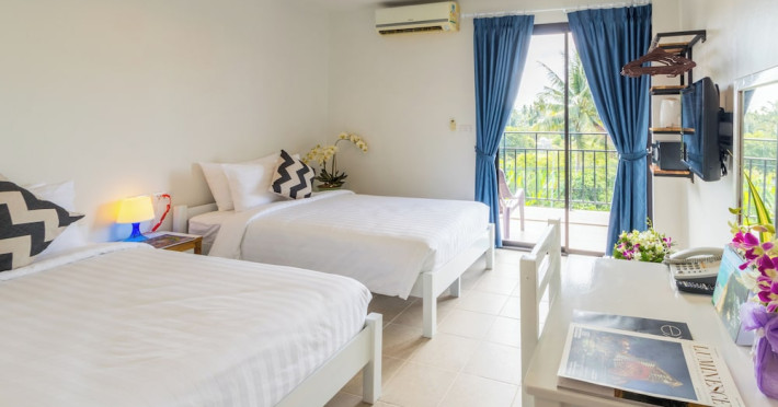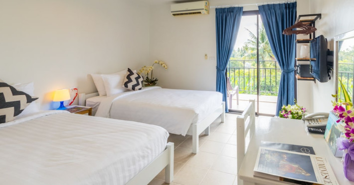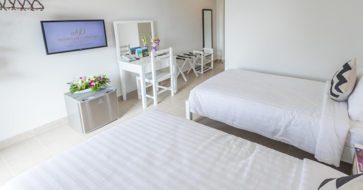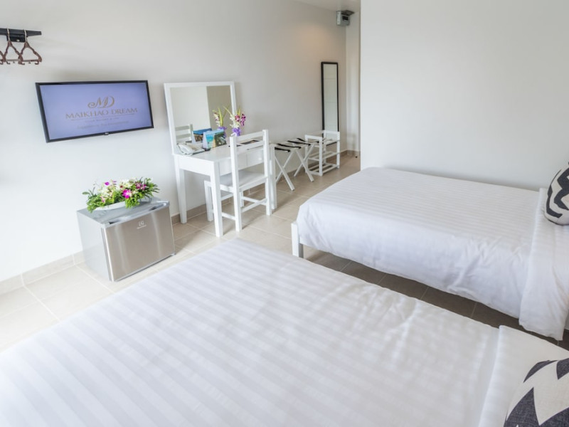 Located in Mai Khao Beach, Maikhao Hotel offers accommodation with a restaurant, bar/lounge, and room service. Guests can enjoy an outdoor swimming pool, fitness centre, garden, shared lounge, and terrace. The hotel provides a 24-hour front desk, room service, and airport transfers. Free WiFi is available throughout the property. Guests can choose from continental, buffet, American, or vegetarian breakfast options. The on-site restaurant serves Italian, Thai, and Russian cuisine, with vegetarian, dairy-free, and halal options available upon request. The hotel offers recreational amenities such as bicycles for rent. Additional amenities include a hair salon, wedding services, a 24-hour business center, dry cleaning/laundry services, and free valet parking. The air-conditioned rooms feature refrigerators, Smart televisions, and a private balcony or terrace. Each room includes a safety deposit box. Bathrooms feature showers, complimentary toiletries, and hair dryers. Conveniences include phones and desks. The hotel is near Mai Khao Beach and Sirinat National Park. Phuket International Airport is nearby. On-site complimentary parking is available. Additional services include concierge service, luggage storage, taxi, car hire, shuttle amenities, and ticket service. Smoking is permitted only in designated areas. Guests can enjoy karaoke rooms, massage, salon and spa services. The Maikhao Hotel is a hotel.