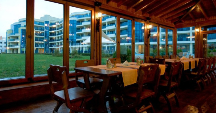 Hotelul Marina Holiday Club 4 * este situat la inceputul orasului Pomorie, foarte aproape de plaja si functioneaza pe tot parcursul anului. Complexul este compus din 150 de apartamente mobilate luxos, centru de relaxare, doua restaurante, doua cocktail-uri, piscina in aer liber, sala de conferinte, teren de minigolf si garaj subteran. Centrul de relaxare sugereaza tratamentele cu namol si apa, masaje si alte terapii. Camere: Apartamente mobilate luxos, dotate cu aer conditionat, TV prin cablu, telefon si mobilier de bucatarie . Site: marinaholiday.club