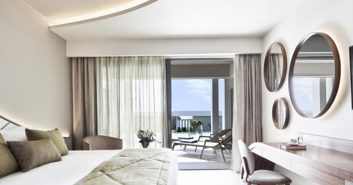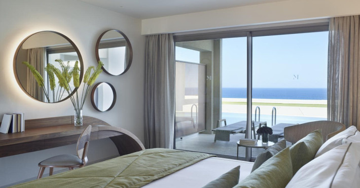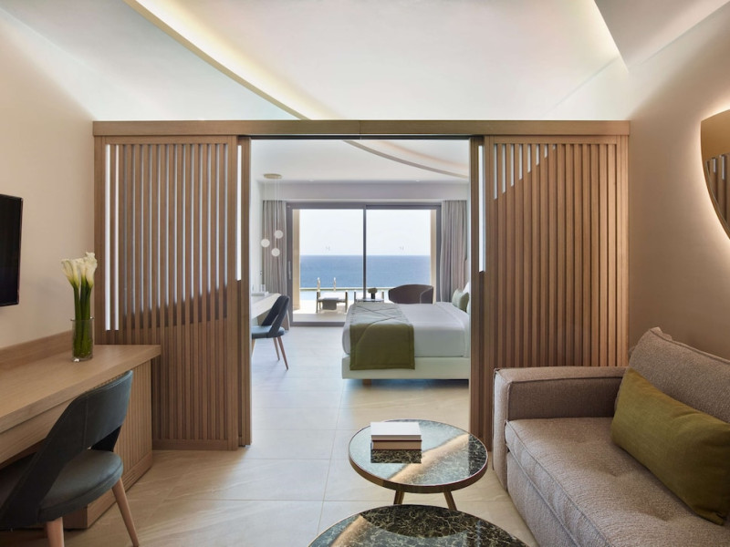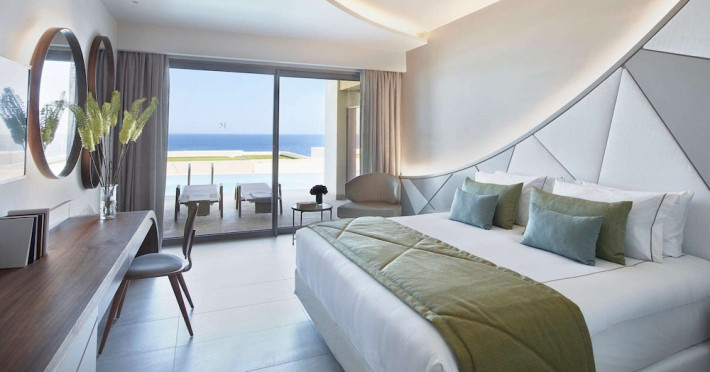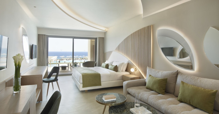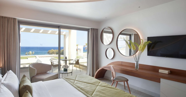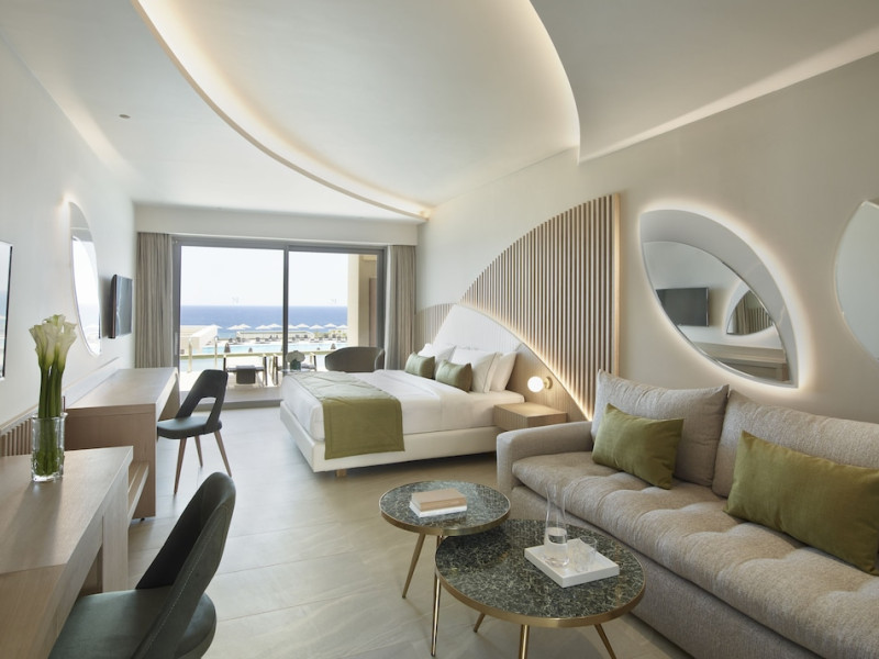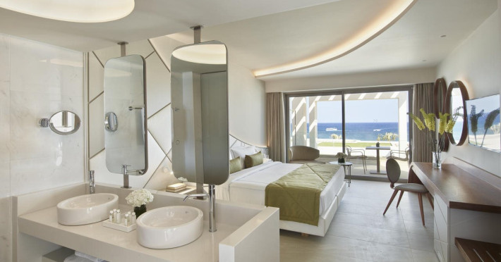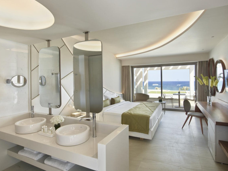 Facilities and services include multilingual staff, restaurant, bar, 24/7 room service (extra charge), live entertainment, spa, indoor pool, hairdresser (extra charge), outdoor pool, gym, sauna, massage (extra charge), doctor on call (extra charge), business center (extra charge), Wi-Fi, car rental desk (extra charge), bicycle rental (extra charge), laundry service (extra charge) car park.Rooms feature coffee/tea-making facilities, hairdryer, TV, Wi-Fi, air-conditioning, mini-bar (extra charge), room service (extra charge), and telephone (extra charge).Junior Suites Sea View also features a living area.**Please note that some of the above facilities may be closed due to weather / seasonal conditions.**The program may change without prior notice**The hotel is Adults Only (16+)The All Inclusive Gold-concept includes all meals (breakfast, lunch, dinner and snacks) and mealtime drinks such as soft drinks, beer, wine, water and alcoholic drinks, all of local & international brands. Drinks are served from morning until late evening (approx until 22.00-24.00 hrs). Opening times vary between different hotels. In certain hotels the activities program is also included.Address: Kiotari, 85109 Rhodes, Rhodes, Greece.