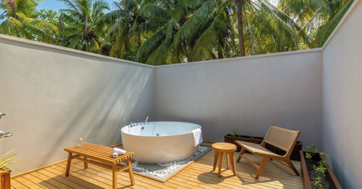 Rooms are equipped with air-conditioning, overhead ceiling fan, sitting area, stocked minibar with refrigerator, complimentary tea/coffee, IDD telephone, Bluetooth Speaker, colour cable TV, complimentary Wi-Fi, personal safe, partially open-air bathroom (excluding Garden Rooms) with shower, rain shower, bath accessories, hair dryer, bathrobes, nightly turndown service upon request.