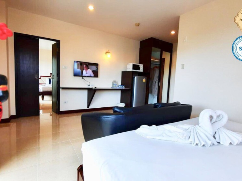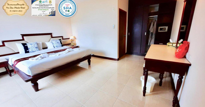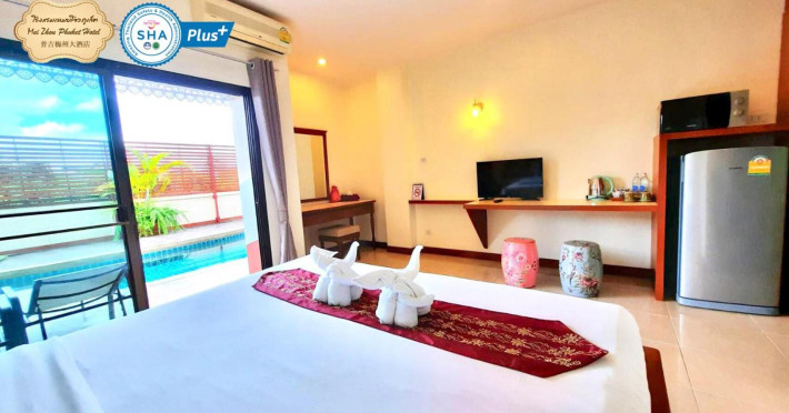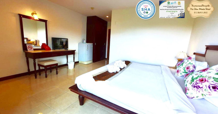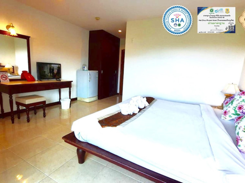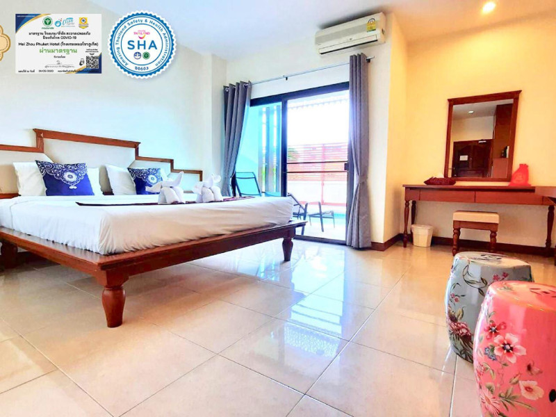 Located in the heart of Phuket Town, Mei Zhou Phuket Hotel - SHA Plus offers air-conditioned rooms with city or mountain views and private balconies. It is conveniently situated near attractions like the Thai Hua Museum and Phuket Weekend Market. The hotel features a 24-hour front desk, tour desk, and free WiFi. Guests can enjoy an outdoor swimming pool, fitness center, hot tub, garden, shared lounge, and terrace. Airport transfers and taxi services are available. Rooms are equipped with a flat-screen TV with cable channels, refrigerator, minibar, kettle, shower, complimentary toiletries, and a wardrobe. Some rooms include bathrobes, a coffee or tea maker and bottled water. The hotel offers complimentary parking, luggage storage, safety deposit boxes, and laundry services. Dining options include a restaurant, room service (during limited hours), and a bar. Breakfast is available on-site. Recreational amenities include a solarium and spa. Phuket International Airport is approximately 31 km away. The Mei Zhou Phuket Hotel is a hotel.