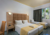 Dotare camere: Cele 116 camere sunt de 3 tipuri: camere duble pentru uz de single (22 mp, max 1 pax), camere duble (22 mp, max 2+1 pax) si camere family sunt open plan (32 mp pt max 2+2 pax). Toate camerele au aer conditionat (cu plata, 7 euro/zi), wi-fi (cu plata), telefon, TV satelit, mini frigider, baie cu cada sau dus, uscator de par, balcon/terasa.