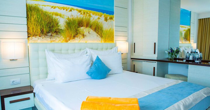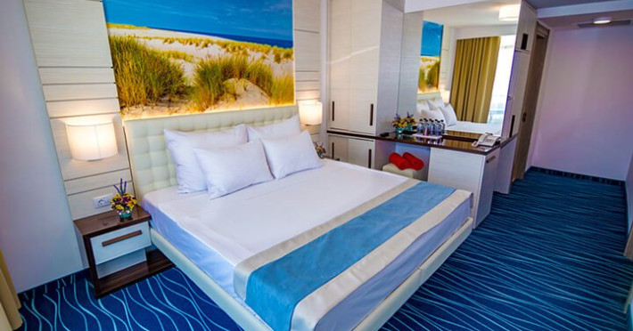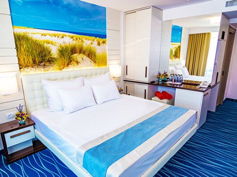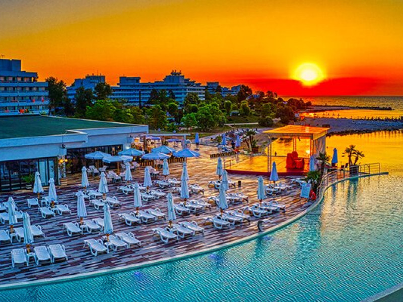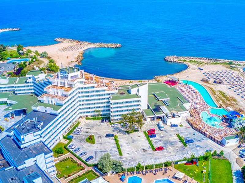 Servicii incluse (all inclusive): Piscina pentru adulti; Umbrele si sezlonguri la piscina in limita locurilor disponibile (alocarea sezlongurilor se face in ordinea sosirii la piscina); Parcare in limita locurilor disponibile; Parc de joaca pentru copii, mini Aquapark pentru copii; Piscina pentru copii incalzita; Piscina cu tobogane acvatice - 3 canale, Teatru de vara pentru copii; Club animatie copii; Jocuri si concursuri adulti si copii (piscine, terasa); Animatori; Muzica live; Program artistic; Umbrele si sezlonguri la plaja in limita locurilor disponibile (alocarea sezlongurilor se face in ordinea sosirii la plaja); prosoape plaja/piscina; Internet WIFI; Pat bebe tip tarc la cerere, in limita disponibilitatii; Beach Bar All inclusive.