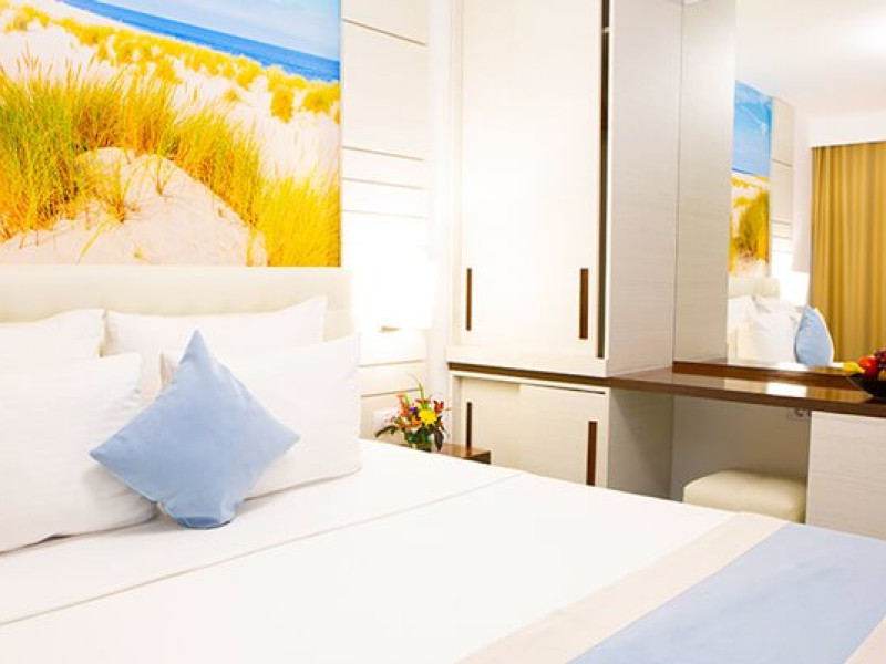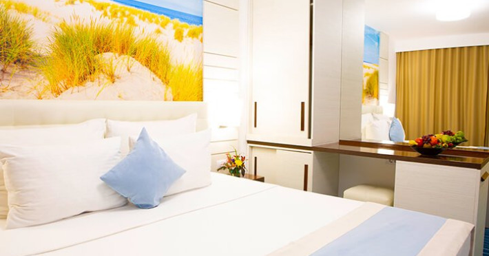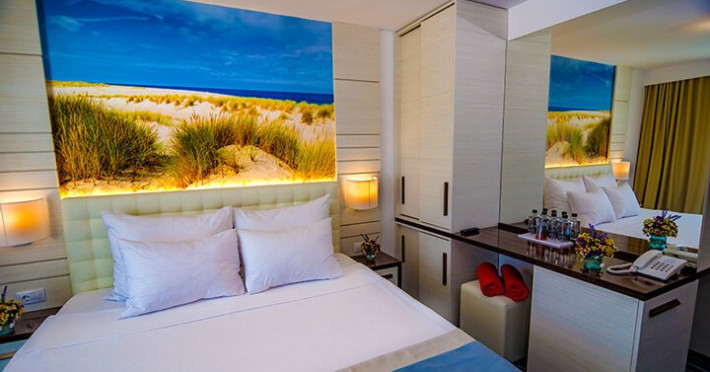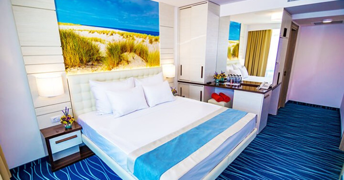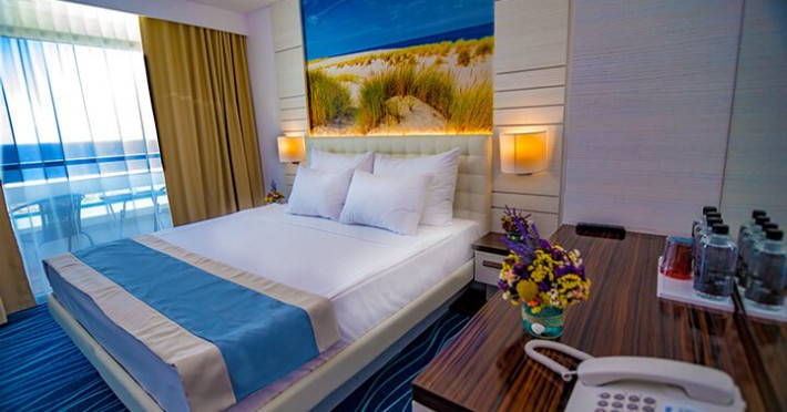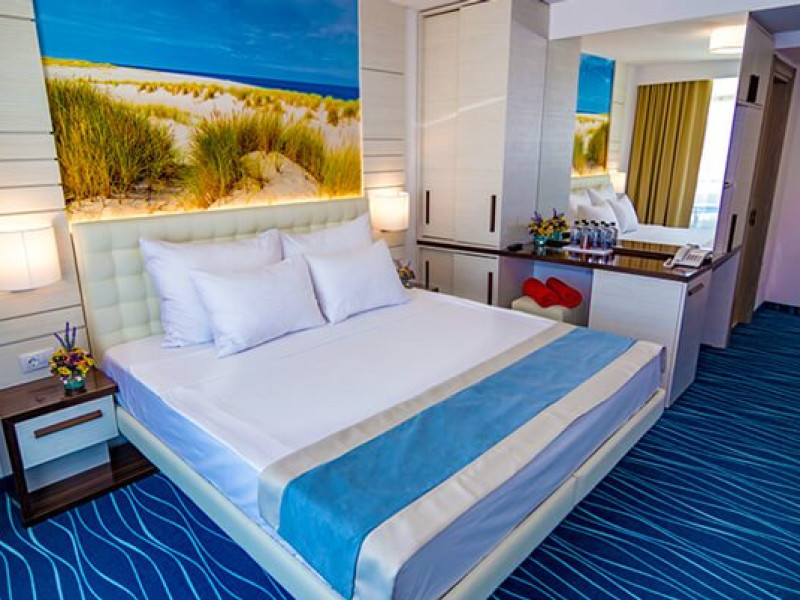 DESCRIERE CAMERE Dotari camere: sistem de acces in camera pe baza de cartela/bratara, aer conditionat, TV LCD, telefon, seif, baie cu cabina de dus, uscator de par, cosmetice hoteliere, prosoape de plaja, balcon, minibar contra cost. Numar total camere: 350