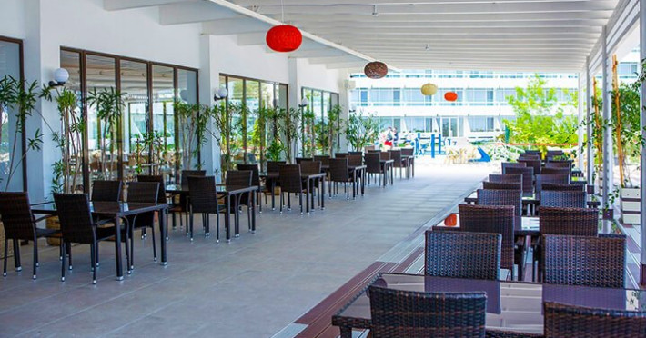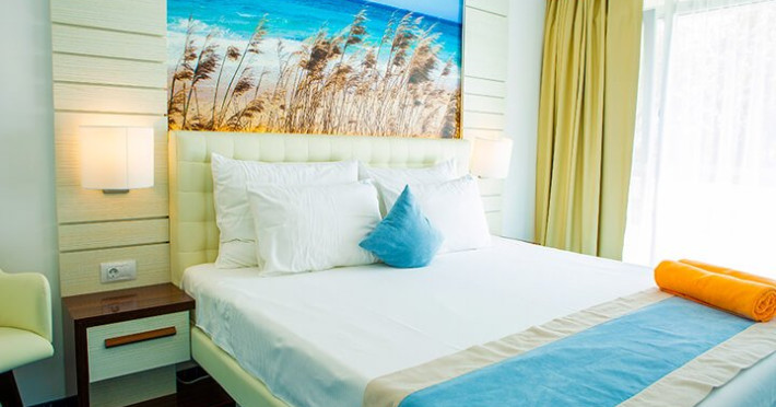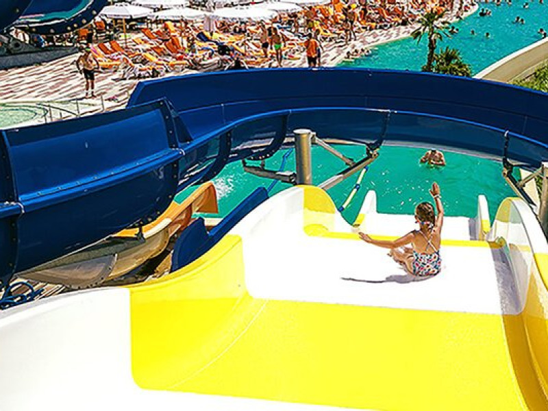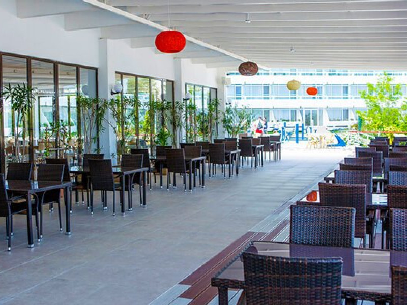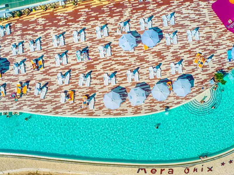 Fitness/Wellness/Sport (informatii suplimentare): Piscina Infinity iti ofera o perpectiva unica, dincolo de limite. Piscina cu margini infinite poate fi considerata o adevarata mare personala, iluzia optica fiind una incredibila! Aceasta are o suprafata de 600 mp si un design modern. Resortul dispune si de o piscina creata special pentru toboganul acvatic cu 3 canale. Copiii se pot distra intr-o piscina cu apa incalzita, special conceputa pentru ei, cu o adancime maxima de 50 cm. La piscine se desfasoara pe parcursul zilei diverse programe: aqua gym, concursuri, spectacole si alte surprize. Plaja Mera Onix se afla la doar 30 m de resort, dispunand de beach bar in regim all inclusive.