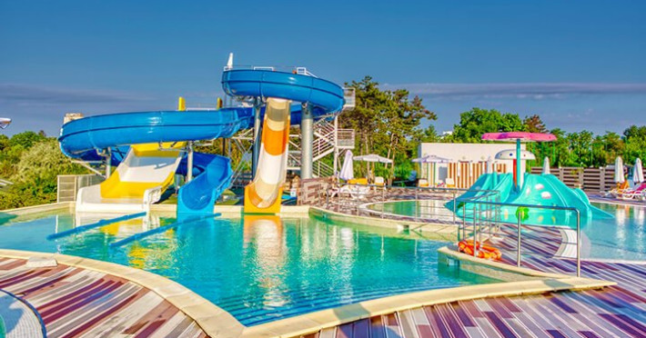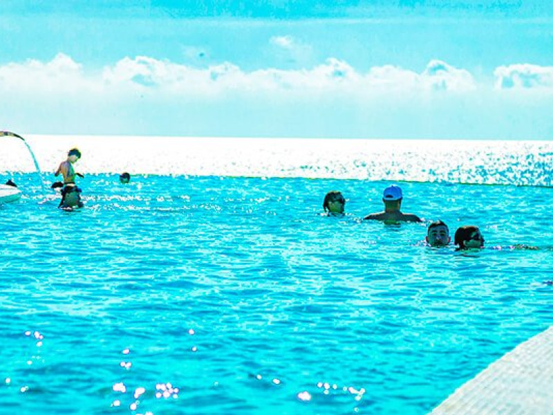 Piscina Infinity iti ofera o perpectiva unica, dincolo de limite. Piscina cu margini infinite poate fi considerata o adevarata mare personala, iluzia optica fiind una incredibila! Aceasta are o suprafata de 600 mp si un design modern. Resortul dispune si de o piscina creata special pentru toboganul acvatic cu 3 canale.