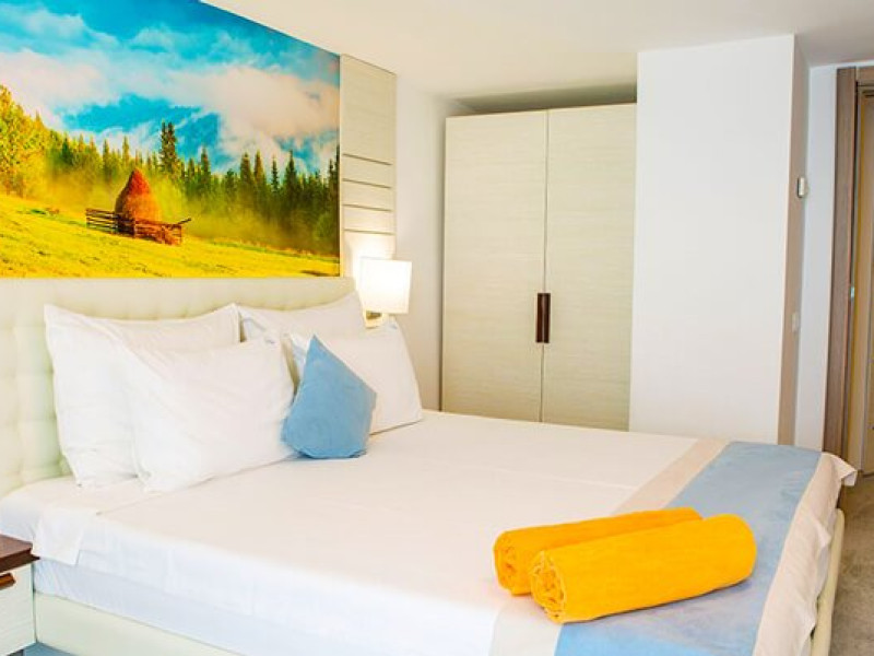 Apartamente Junior: - Apartamentul Junior Suite este compus din camera de zi, cu canapea extensibila si dormitor cu pat matrimonial, avand o suprafata de aproximativ 30 mp. Apartamentul dispune de o singura baie.