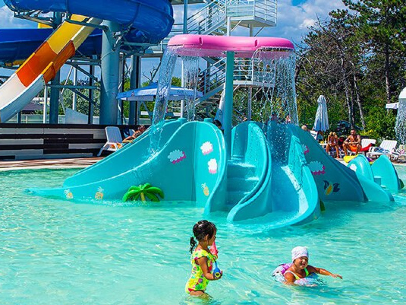 Copiii se pot distra intr-o piscina cu apa incalzita, special conceputa pentru ei, cu o adancime maxima de 50 cm.