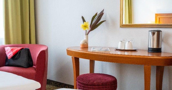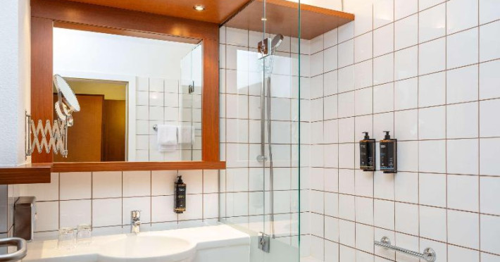 A suite, 15 single rooms and 237 double rooms are located on 8 storeys and can be reached by lift. Multilingual staff (English, German, French) at the reception are happy to assist guests at the reception desk round the clock. Check-in and check-out are available 24 hours a day. Services such as a baggage storage service, a safe and a currency exchange service ensure a comfortable stay. Wireless internet access is provided in public areas. The tour desk offers assistance with booking excursions. The hotel has a range of facilities for guests with disabilities. The hotel has wheelchair-accessible facilities. There are a number of shops as well. Guests arriving by car can park their vehicles in the garage or in the car park (for a fee). Other services include a 24-hour security service, a babysitting service, medical assistance, 24-hour room service, a laundry service and a coin-operated laundry. Cyclists can make use of the bicycle storage area and hire service. Complimentary newspapers are available. A business centre with fax machine and projector is available.