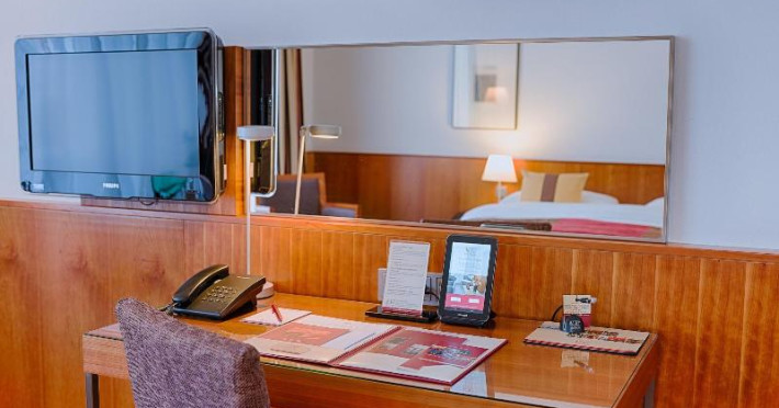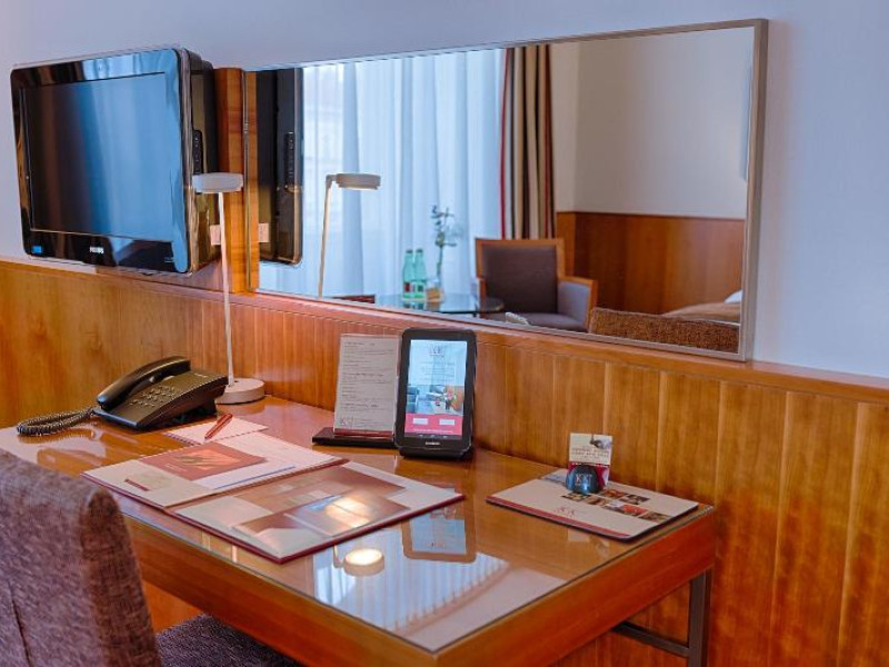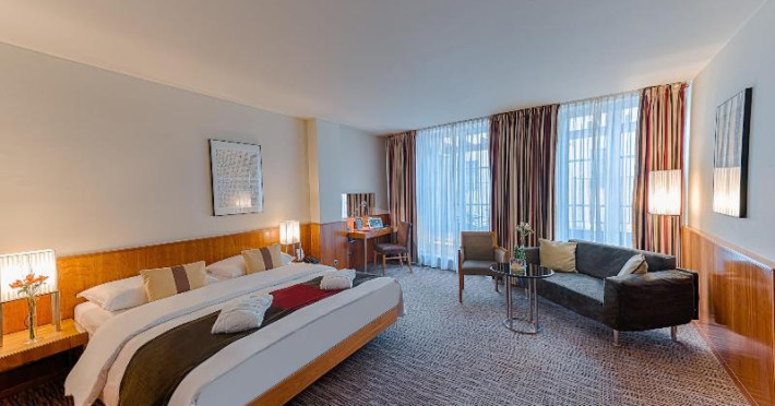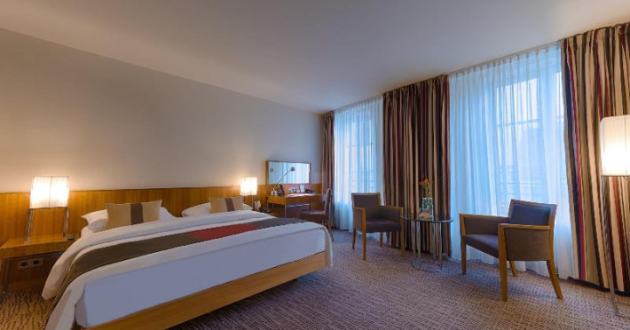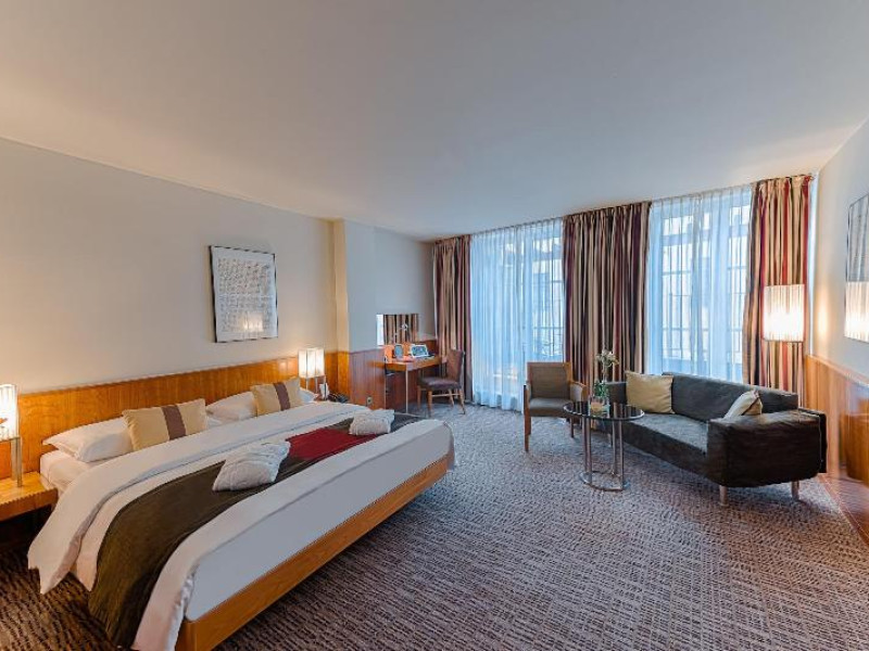 The hotel has 4 junior suites, 99 suites, 3 single rooms and 116 double rooms, which are located on 6 storeys and are reachable by lift. The reception desk is open round the clock. Services such as a cloakroom, baggage storage service, safe, currency exchange service and cash machine ensure a comfortable stay. Wireless internet access in public areas allows guests to stay connected. The tour desk offers assistance with booking excursions. Additional facilities include a newspaper stand. Guests arriving by car can park their vehicles in the garage (for a fee) or in the car park. Further services and facilities include a 24-hour security service, a babysitting service, a car hire service, medical assistance, a transfer service, room service (for a fee), a laundry service, a coin-operated laundry, a page service and a hotel shuttle bus. Complimentary newspapers are available. A business centre with fax machine and projector is available.
