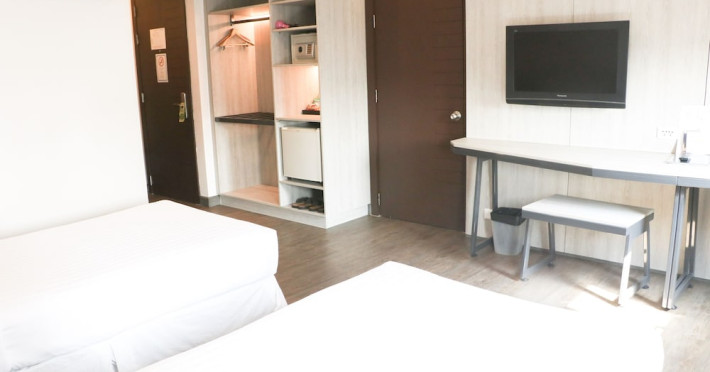 The Mini R Ratchada is a 10-minute walk from Huaykwang MRT Subway Station. It offers modern air-conditioned rooms with free Wi-Fi. Staff at the 24-hour front desk can offer assistance with luggage storage and laundry service. The property is a 15-minute drive from Makkasan Airport Rail Link Station and Central Rama 9 Department Store. Rooms at The Mini R are fitted with hardwood floor and contemporary decor. Each room features a flat-screen cable TV, a mini-bar and a safety deposit box. Free toiletries and a hairdryer are included in an private bathroom. Slippers are provided. Guests can enjoy Thai and American dishes at Maxi's Pizzeria .WiFi is available in the hotel rooms and is free of charge.