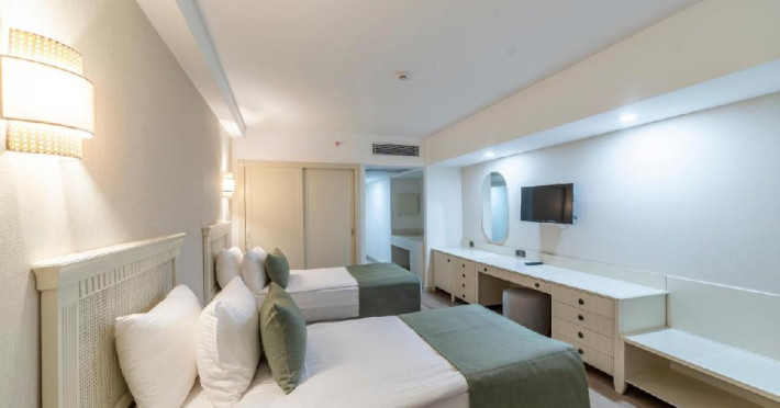 Facilitati hotel: servicii bellboy, parcare gratuita, accesibilitate pentru oaspetii cu dizabilitati, Wi-Fi, muzica live si spectacole de divertisment, centru de fitness si facilitati recreative, plaja cu steag albastru, club pentru copii, sauna, baie turceasca, camera de aburi, minibar, restaurant, SPA,