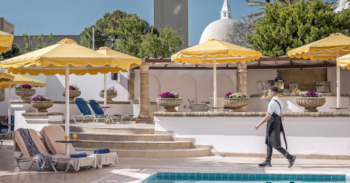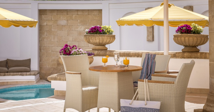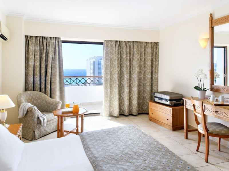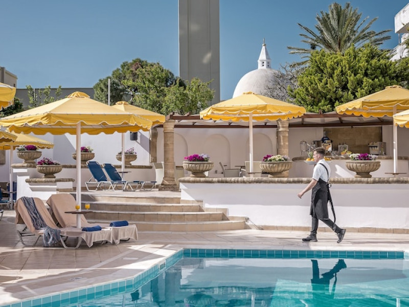 In Rhodes (Neochori). With a stay at Mitsis Petit Palais Beach Hotel in Rhodes (Neochori), youll be within a 5-minute drive of Rhodes Port and Kýmata Beach. This beach hotel is 0.2 mi (0.4 km) from Rhodes National Theatre and 0.3 mi (0.4 km) from Akti Miaouli Beach. Make yourself at home in one of the 215 air-conditioned rooms featuring minibars and flat-screen televisions. Complimentary wireless internet access is available to keep you connected. Private bathrooms with bathtubs feature complimentary toiletries and hair dryers. Conveniences include phones, as well as safes and desks. All-inclusive rates are available at this hotel. Meals and beverages at onsite dining establishments are included in all-inclusive rates. Charges may be applied for dining at some restaurants, special dinners and dishes, some beverages, and other amenities. You can enjoy a meal at Main restaurant serving the guests of Mitsis Petit Palais Beach Hotel, or stop in at the snack bar/deli. Relax with a refreshing drink from the poolside bar or one of the 2 bars/lounges. A complimentary buffet breakfast is served daily from 7:00 AM to 10:30 AM. Be sure to enjoy recreational amenities including an outdoor pool and bicycles to rent. This hotel also features complimentary wireless internet access, babysitting (surcharge), and gift shops/newsstands.