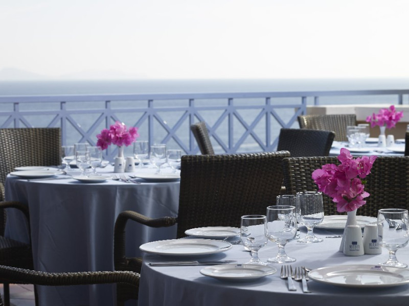 Descriere: Hotelul este amplasat pe un promontoriu oferind o vedere panoramica spre mare impresionanta. Dispune de numeroase facilitati si servicii ce il recomanda in special familiilor cu copii. Accesul la plaja se face prin intermediul unui ascensor. Localizare: la 7 km de Kardamena, 35 km de orasul Kos, 15 km de aeroport, statie de autobuz in fata hotelului. Dotari camere: Camerele sunt decorate in nuante de albastru si sunt dotate cu aer conditionat, uscator de par, mini frigider, televizor, balcon/terasa, seif (contra cost). Facilitati hotel: Hotelul dispune de urmatoarele facilitati: restaurant bufet, restaurant italian, taverna, 4 baruri, piscina, water park cu tobogane, piscina si mini club pentru copii, mini disco, echipa de animatie, amfiteatru, facilitati fara costuri suplimentare (centru fitness, 2 terenuri de tenis, biliard, tenis de masa, volei si fotbal pe plaja, canoe, hidrobiciclete, windsurfing - doar in baza unui certificat valabil), facilitati contra cost (sporturi acvatice ca ski nautic, jet ski, paraglding, catamaran, cursuri de scuba diving). Clasificarea oficiala in Grecia: 5*, dar agentia noastra il recomanda ca 4* superior. Tip masa: all inclusive: mic dejun, pranz si cina bufet, gustari intre mese, bauturi alcoolice si racoritoare locale neimbuteliate. Website: www.mitsishotels.com