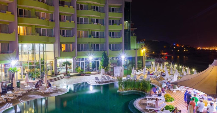 Localizare: Mpm Arsena Hotel se afla in prima linie de hoteluri, pe plaja. Plaja se afla la 20 de metri, iar centrul orasului la 200 metri. Facilitati hotel: Hotelul pune la dispozitia turistilor restaurant principal, lobby bar, bar la piscina, snack bar, bar pe plaja, piscina exterioara cu sectiune pentru copii, biliard, internet WiFi (in lobby bar, la piscina si in receptie), programe de animatie, fitness, sauna, masaj, camera de relaxare, baie turceasca, sala de conferinte dotata cu sistem multimedia si sonorizare, parcare (contra cost). Facilitati pentru copii: animatie pentru copii. Dotari camere: Camerele sunt dotate cu fotoliu, TV, telefon, seif (contra cost), balcon, internet WiFi (contra cost), birou, frigider, baie cu cada, uscator de par. Pagina web: https://mpmhotels.bg/hotel/hotel-arsena/