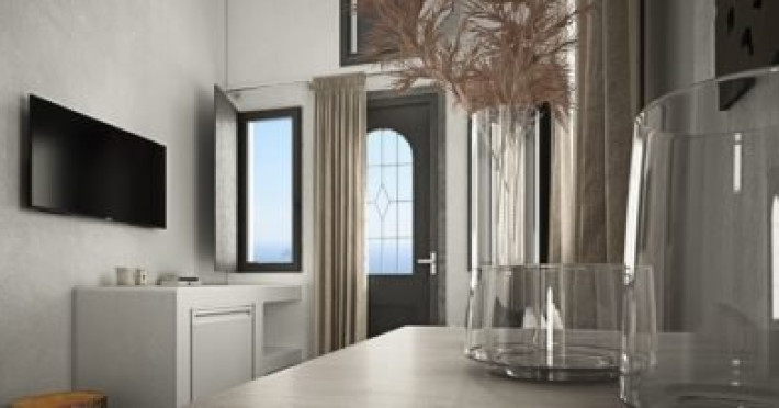Dotari camere: Hotelul are 25 de camere si suite dotate cu aer conditionat, internet WiFi, TV satelit, telefon, seif, minibar, facilitati pentru preparat cafea/ceai, baie cu uscator de par, articole de toaleta, halat si papuci. La cerere se ofera masa si fier de calcat, fierbator si cantar de baie. Toate camerele si suitele au balcoane / terase private cu vedere la faimoasa Caldera.