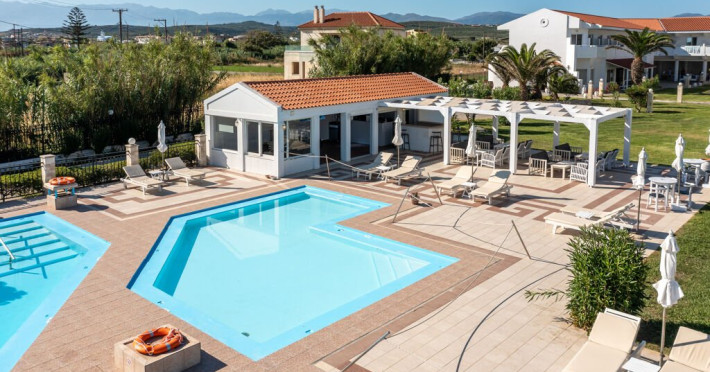Descriere: Hotelul Mrs Chryssana Beach, partial renovat in 2021, este situat intr-o zona linistita din Kolymbari, chiar langa o plaja lunga, in cadrul unei zone protejate de Natura 2000. Hotelul imbina un design mediteranean tipic, in tonuri de alb, cu o estetica minimalista, oferind camere duble recent renovate, care creeaza un cadru elegant si relaxant. Localizare: in zona Kolymbari, la doar 25 de metri de o plaja cu pietris (peste drum) si la 38 de kilometri de Aeroportul International din Chania. Dotari camere: aer conditionat individual (gratuit), Wi-Fi (gratuit), televizor, seif (contra cost), mini frigider, uscator de par, produse de toaleta, balcon/terasa. Tipuri de camere: Camera dubla clasica cu vedere la gradina sau vedere laterala la mare: aproximativ 22 mp, maxim 2 persoane (paturi twin sau un pat dublu). Camera dubla eleganta cu vedere la mare: aproximativ 22 mp, maxim 2 persoane (paturi twin sau un pat dublu). Facilitati hotel: restaurant, bar in lobby, bar langa piscina, lounge, Wi-Fi gratuit in zonele publice, gradina, piscina, prosoape pentru piscina, sezlonguri si umbrele gratuite la piscina, terasa insorita. Facilitati pentru copii: piscina separata pentru copii. Sporturi acvatice: disponibile contra cost printr-un alt furnizor (scufundari, schi nautic, jet ski, parasailing, windsurfing). Web site: https://mrschryssana.hotelbrain.com/en/ Pentru anumite facilitati din hotel sau din camera, hotelierul poate solicita taxe suplimentare. In momentul sosirii la hotel solicitati receptionerului sa va informeze cu exactitate asupra lor. Taxa de statiune obligatorie - se plateste cash la receptie.