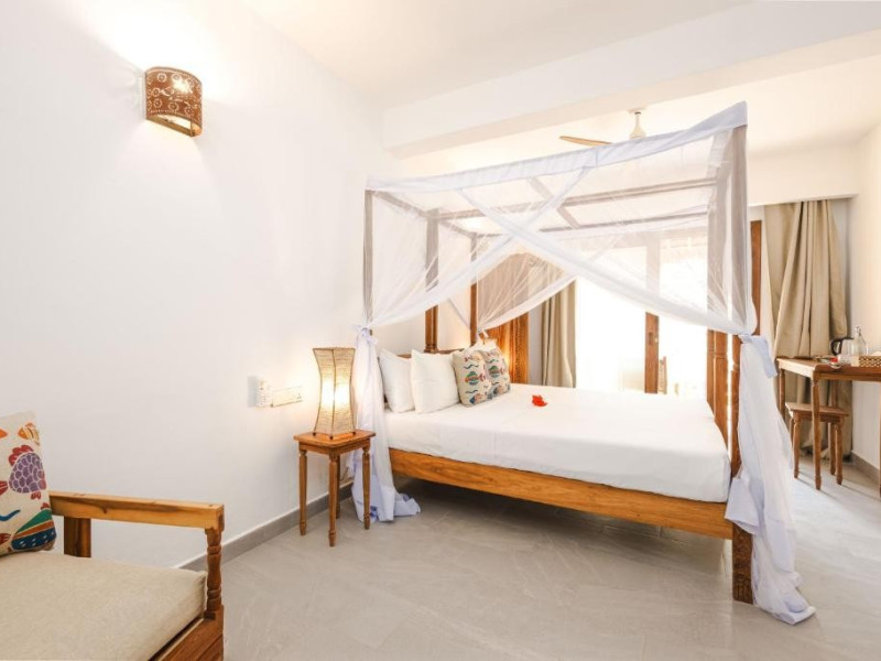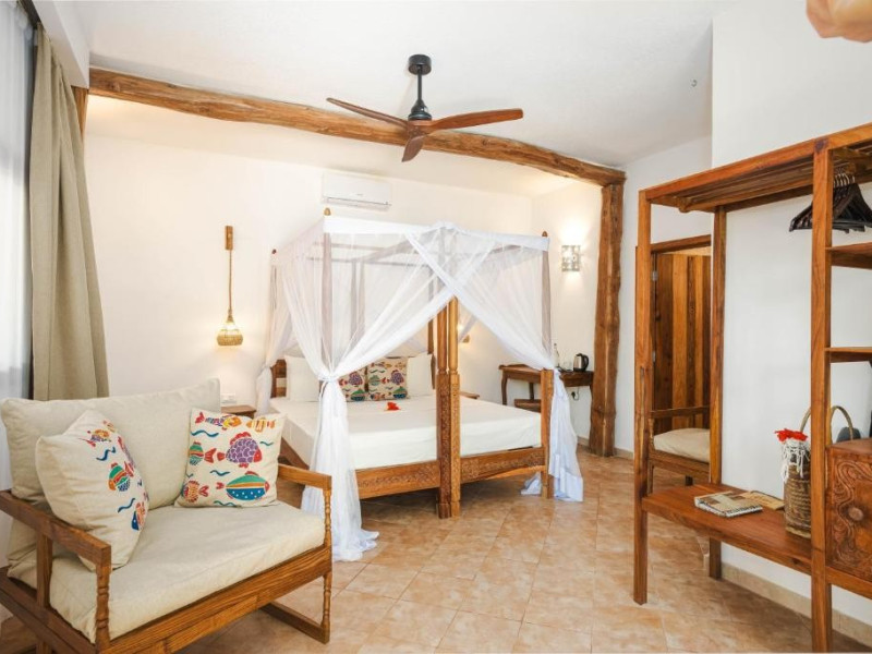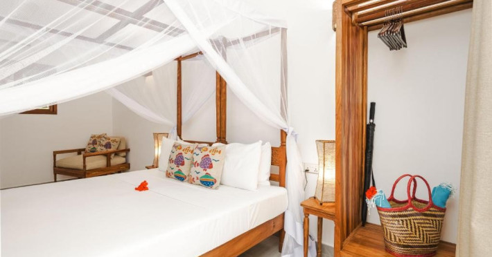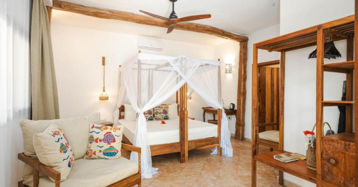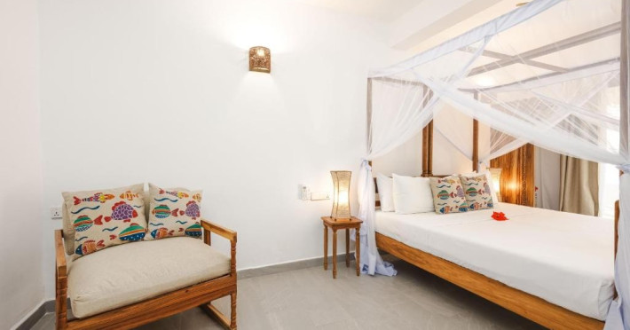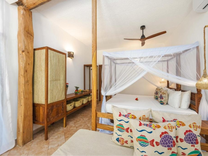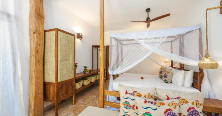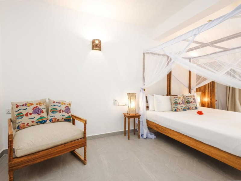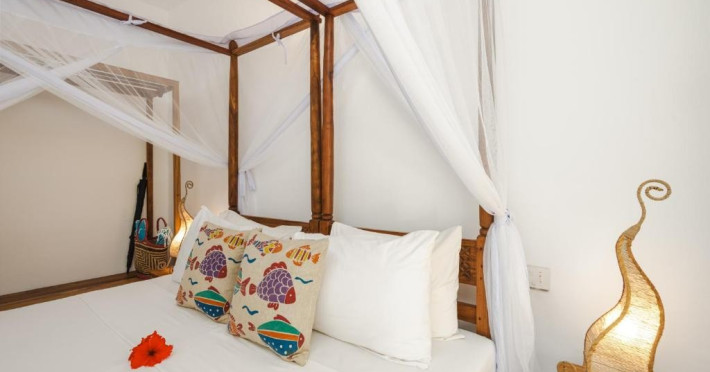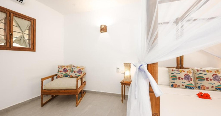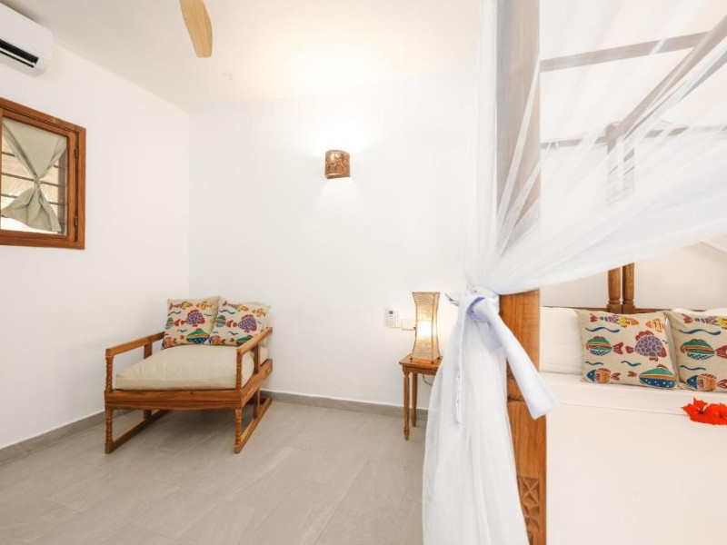 Mvuvi Boutique ofera o piscina cu vedere la mare, un restaurant pe plaja, o sala de sport, un centru spa si un centru dedicat sporturilor nautice. Oaspetii se bucura de acces deplin la toate facilitatile. Camerele sunt decorate in stil swahili modern si luminos. Toate camerele sunt dotate cu aer conditionat, facilitati pentru prepararea de ceai si cafea, seif, uscator de par, prosoape si articole de toaleta.