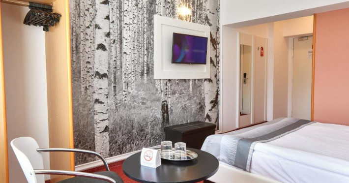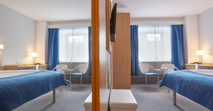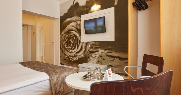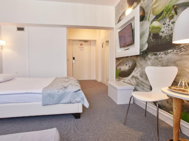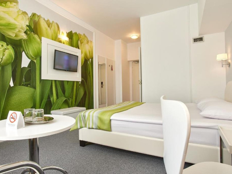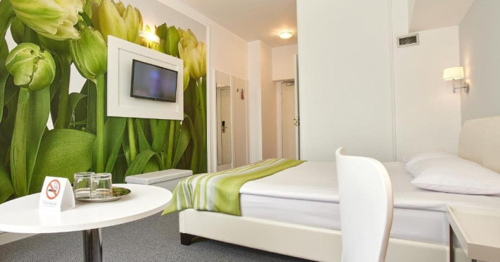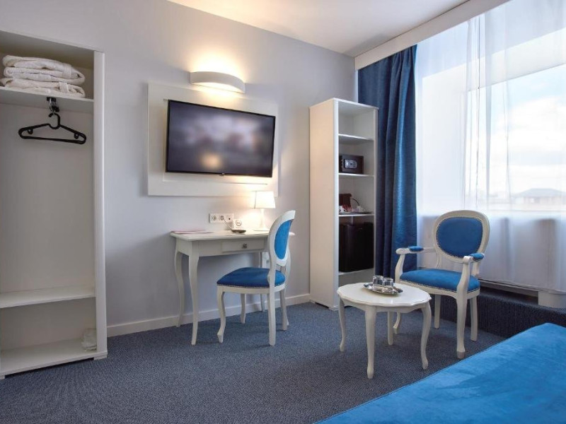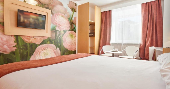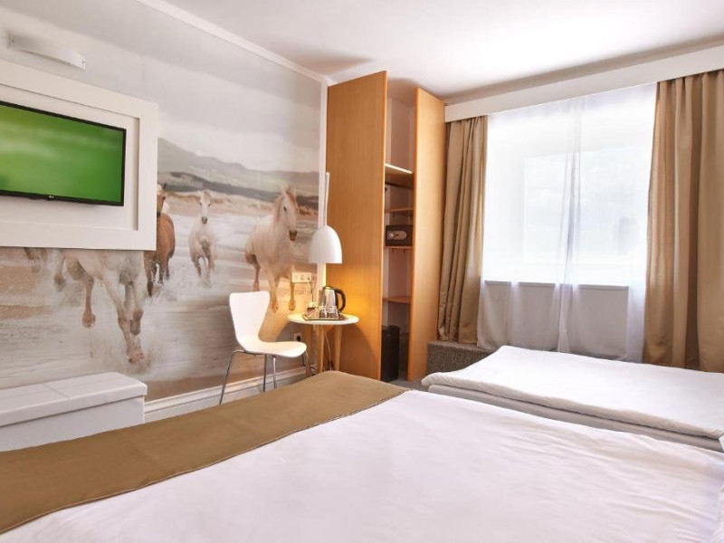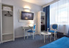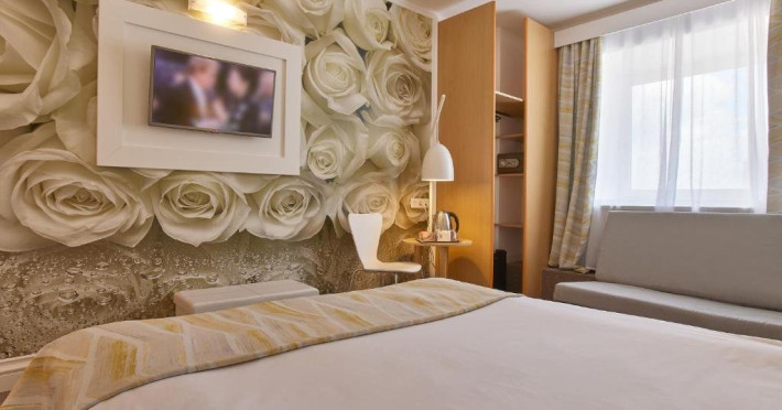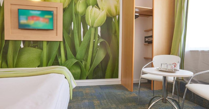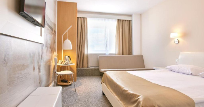 FACILITATI UNITATE 250 camere / 7 etaje Spatiu mic dejun MyBistro (130 locuri) terasa Bar de zi (42 locuri) Parcare supravegheata (contra cost) Camera bagaje Facilitati persoane cu dizabilitati si mobilitate redusa Fumatul interzis in hotel Sistem climatizare: aer rece vara, aer cald iarna Patut de copil la cerere Mini frigider Fierbator de apa (Camere Superior) Espressor (Apartamente) TV cu ecran plat Seif in camere Baie cu dus Cosmetice baie Uscator de par Halat de baie si papuci in apartamente Apel trezire