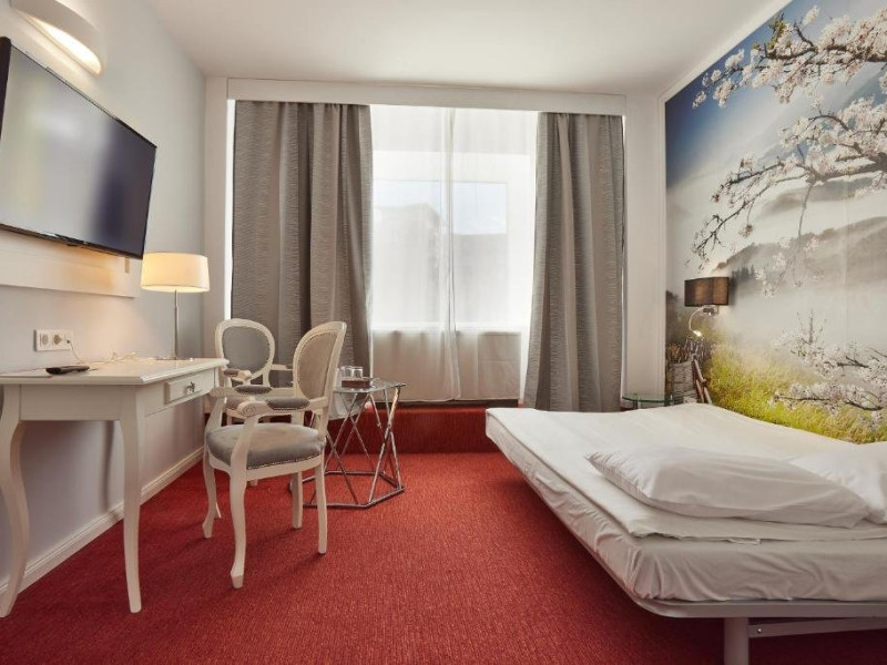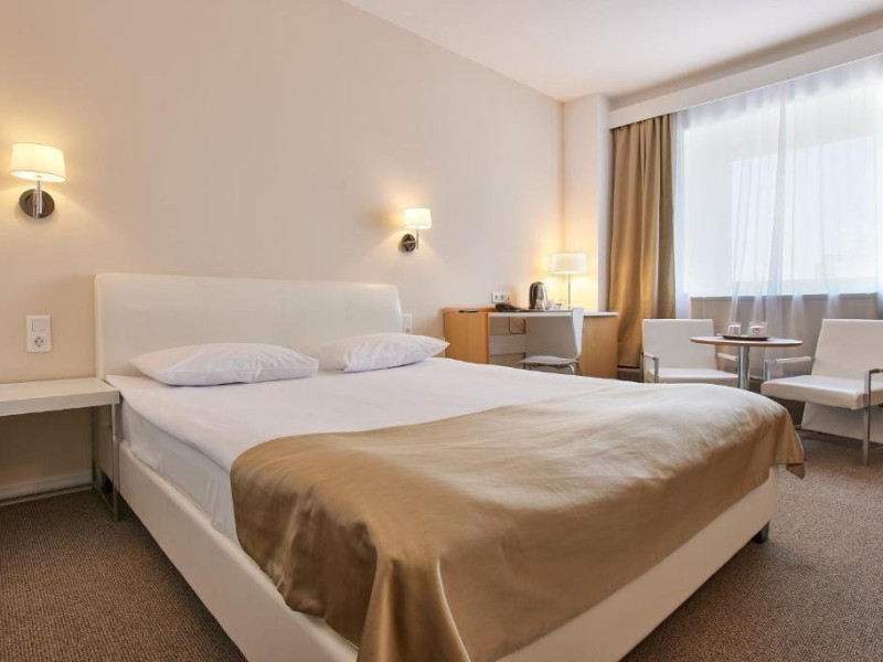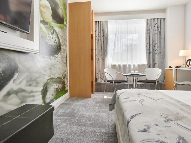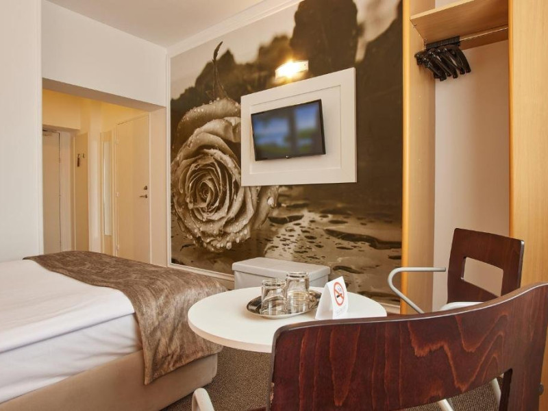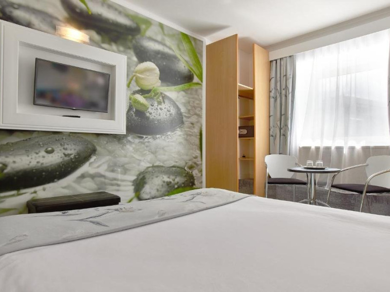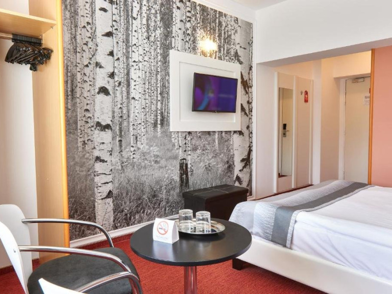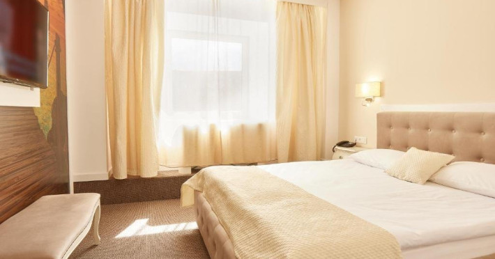 LOCALIZARE Hotelul beneficiaza de o amplasare excelenta, fiind pozitionat la o distanta de doar 2 minute de mers pe jos fata de Gara de Nord (principalul nod feroviar de transport intern si international). Aeroportul International Henri Coanda se afla la aproximativ 20 de km, iar distanta poate fi parcursa si cu trenul care circula pe ruta Aeroportul International Henri Coanda - Gara de Nord. Nu in ultimul rand, statia de metrou ce faciliteaza transportul rapid in capitala este situata chiar in fata hotelului.