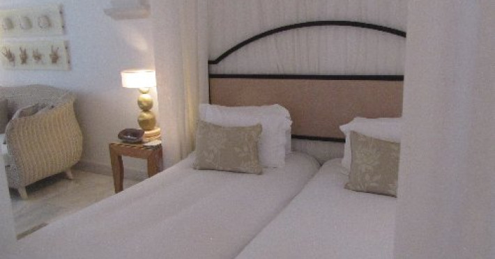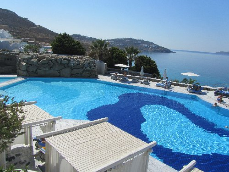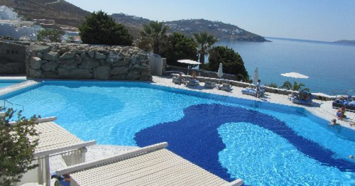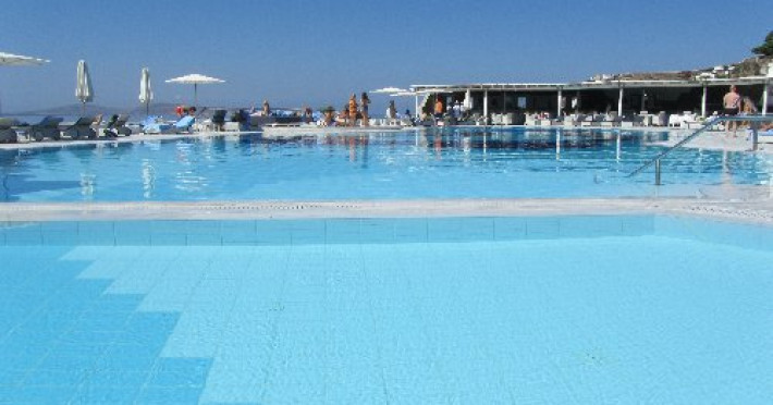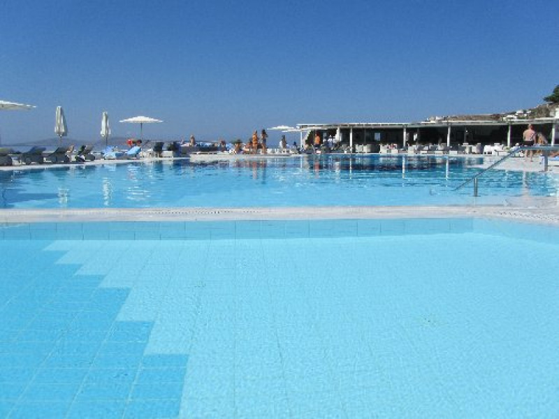 Descriere: Mykonos Grand ofera spatii de cazare de tip boutique cu design placut, placerea si relaxarea din acest loc fiind data si de localizarea sa, printre poteci pietruite cu vedere la insula Delos. Localizare: situat pe plaja de nisip Agios Ioannis, la 4,5 km de orasul Mykonos. Dotari camere: Camerele si apartamentele de la Mykonos Grand combina arhitectura cicladica in forma de cub cu un decor interior linistitor. Acestea sunt dotate cu TV LCD prin satelit, DVD player si iPod docking station. Toate spatiile de cazare au balcon sau patio cu vedere la mare, la gradina sau la piscina. Facilitati hotel: Mykonos Grand pune la dispozitia oaspetilor sai: restaurant, bar, restaurant a la carte, meniuri cu diete speciala, gradina, terasa, teren de tenis, sala de fitness, spa si centru wellness, masaj, tenis de masa, cada cu hidromasaj,biblioteca, baie turceasca, squash, internet wireless, parcare privata. Facilitati copii: servicii de baby sitting Alte facilitati si servicii: sali de conferinta, bagaje, spalatorie, calacatorie, schimb valutar, birou de turism, magazin de suveniruri. Plaja: de nisip, in fata hotelului. Masa: mic dejun si optional demipensiune Web site: www.mykonosgrand.gr