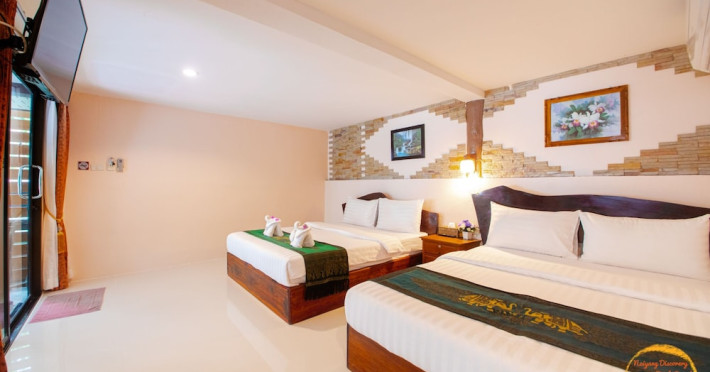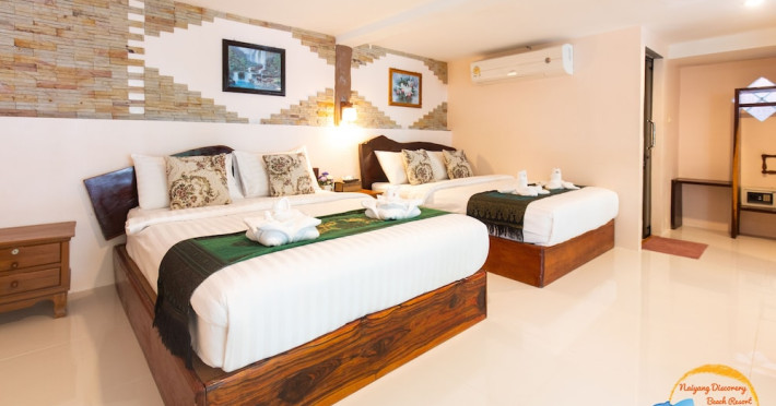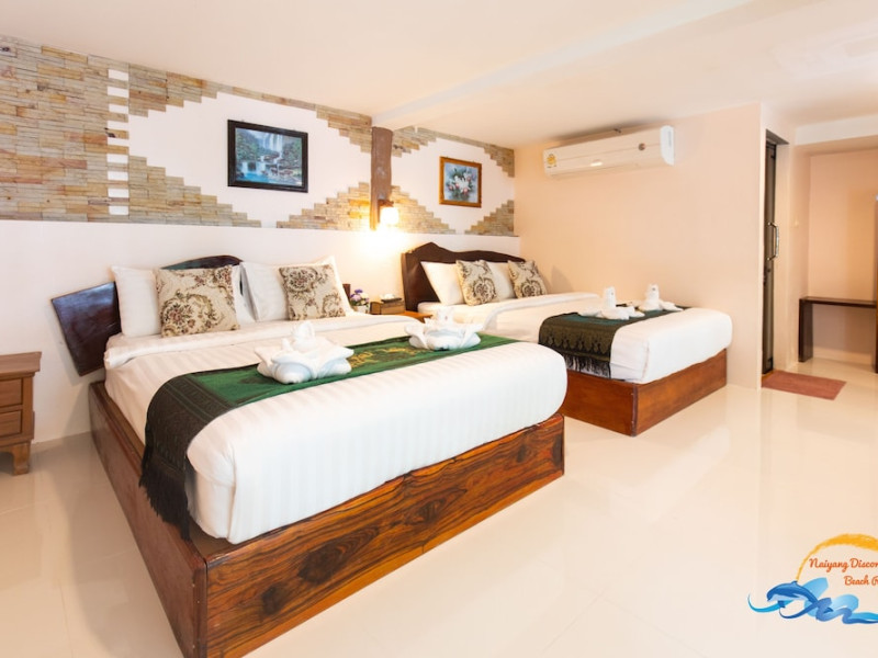 Located on Nai Yang Beach in Sa Khu, Naiyang Discovery Beach Resort offers air-conditioned rooms with refrigerators and flat-screen TVs. Guests enjoy complimentary Wi-Fi, private bathrooms with showers and toiletries, and daily housekeeping. The resort features a restaurant, terrace, tour/ticket assistance, laundry services, and luggage storage. Additional amenities include a 24-hour front desk and free parking. The resort is located close to Phuket International Airport. Rooms are equipped with safes and desks. The Naiyang Discovery Beach Resort is a hotel.