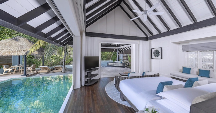 Naladhu Private Island Maldives, an exclusive retreat on the Indian Ocean, offers expansive villas and houses, each with a private pool overlooking the azure waters. The resort features a full-service spa with massages and body treatments, an outdoor pool, a steam room, a fitness center, complimentary Wi-Fi, concierge services, and gift shops. Dining options include The Living Room (one of four restaurants) serving international cuisine, 24-hour room service, and a coffee shop/cafe. A bar/lounge and poolside bar are also available. A complimentary cooked-to-order breakfast is served daily. Guestrooms include private plunge pools, LCD televisions, Frette Italian sheets, single sofa beds, private patios, and bathrooms with separate bathtubs and showers. Wired and wireless internet access, iPod docking stations, and satellite programming are provided. Nearby beaches include Dhigufinolhu, Bodu Hurraa, Gulhi, Biyadoo, Embudu, Rihiveli, Vadoo, Rannalhi, Laguna, Olhuveli, Kandooma, and Villingili Public Beach. Velana International Airport (MLE) is 4.2 km away; a roundtrip airport shuttle is available for a surcharge. The Naladhu Private Island Maldives is a Beach Resort, Boutique, Child Friendly, Colonial Style, Diving Resort, Eco Friendly, Full Service, Health Resort, Honeymoon, Spa Resort, Sports Resort, Tourist, Villa Resort hotel. The nightlife/restaurants are within walking distance from the hotel.