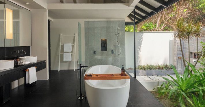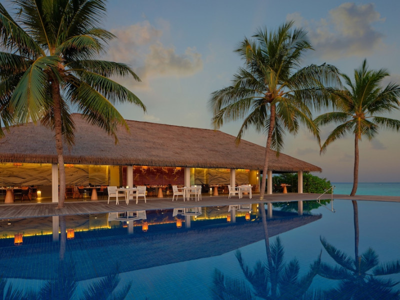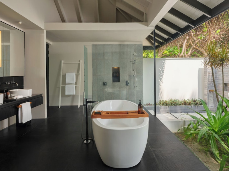 Noku Maldives Vignette Collection, a Vignette Collection, offers 50 luxurious private villas—a mix of beach and overwater—nestled on the soft, powdery sands of Noonu Atoll. Each villa provides utmost privacy and stunning ocean views. Enjoy quintessential dining experiences featuring authentic Maldivian flavors, along with Thai, Japanese, and Singaporean cuisine at Thari Restaurant. Additional dining options include Palms Restaurant (à la carte) and 24-hour room service. Relax with a drink at Palms Bar, offering cocktails blending Eastern and Western influences. Amenities include a full-service spa with massages and body treatments, an outdoor pool, a 24-hour fitness center, complimentary Wi-Fi, concierge services, and daily complimentary full breakfast (6:30 AM–9:30 AM). The resort also features a complimentary daily reception. Guest rooms offer minibars (with some free items), Smart TVs, separate bathtubs and showers with rainfall showerheads and bidets, and daily housekeeping. Airport transfers are available for a surcharge (scheduled times). The nearest airport is Velana Intl. Airport (MLE), approximately 45 minutes away by seaplane or a 40-minute flight to Maafaru followed by a 15-minute speedboat ride. The Noku Maldives Vignette Collection is a hotel.