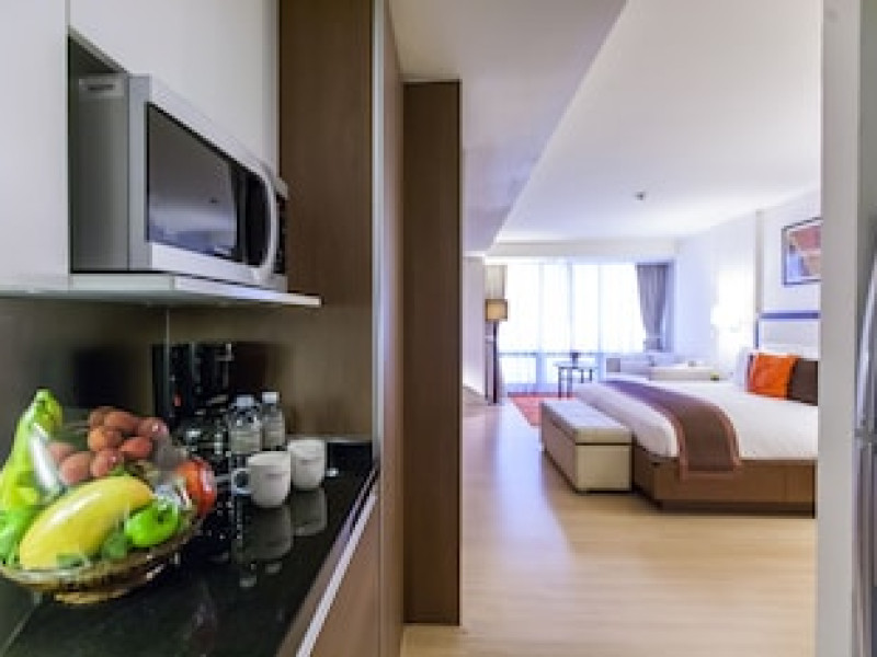 Rooms Make yourself at home in one of the 112 guestrooms, featuring kitchenettes with refrigerators and stovetops. Wired and wireless internet access is complimentary, while 42-inch flat-screen televisions with premium TV channels provide entertainment. Conveniences include safes and desks, and housekeeping is provided daily.
