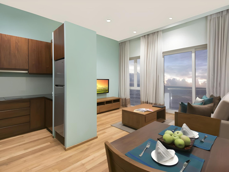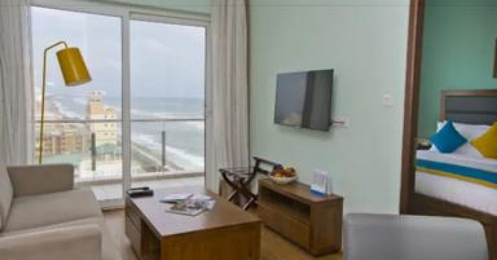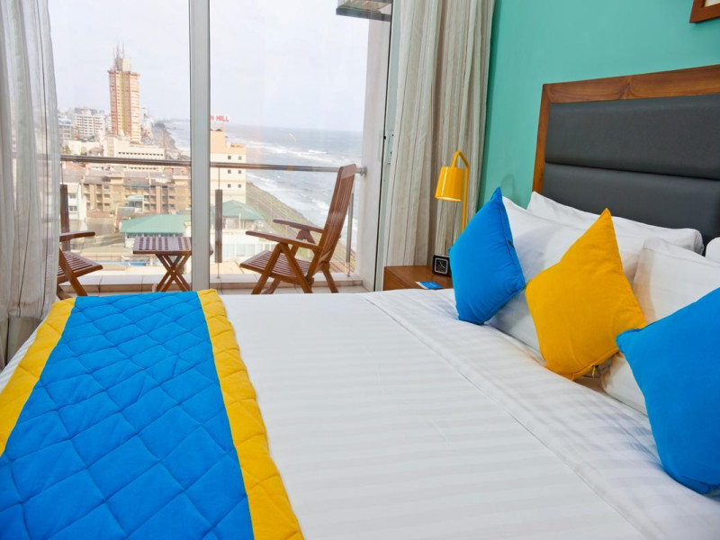 Ocean Edge Suites & Hotel Colombo offers 78 air-conditioned suites and studios with kitchens featuring refrigerators and stovetops. Rooms include pillowtop beds with Egyptian cotton sheets, 40-inch LED TVs with cable, complimentary WiFi, phones, safes, and desks. Bathrooms provide showers, bathrobes, slippers, and complimentary toiletries. Guests can enjoy an in-house restaurant & bar, 24-hour room service, and a daily complimentary reception. The hotel features an indoor swimming pool, fitness center, computer station, complimentary newspapers in the lobby, and concierge services. Additional amenities include a terrace, meeting room, dry cleaning/laundry services, and free valet parking. An airport shuttle is available for a surcharge. The hotel also offers car hire, a 24-hour front desk, luggage storage, and safety deposit boxes. Free private parking and WiFi are available. The hotel is located in Colombo (Bambalapitiya), near Marino Mall. The Ocean Edge Suites is a hotel.