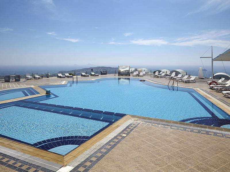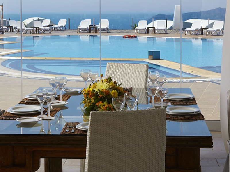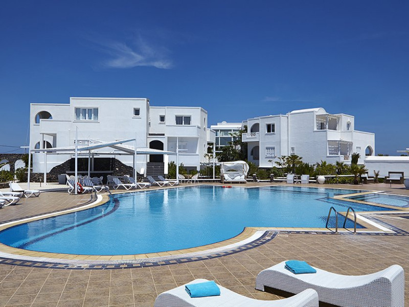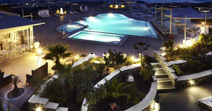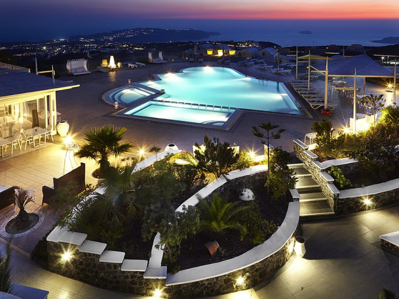 Localizare  HOTEL ORIZONTES: Hotelul este situat intre orasul Fira si Pyrgos, situat pe un deal, intre podgorii de vin, oferind o vedere panoramica exceptionala asupra insulei Santorini. Hotelul se afla la 3 km de orasul Fira si la cateva minute de mers pe jos de cea mai mare podgorie a insulei - SantoWines. La 50 m se afla o statie de autobuz, iar portul Athinios este situat la 4 km. Aeroportul din Santorini este situat la 5 km.