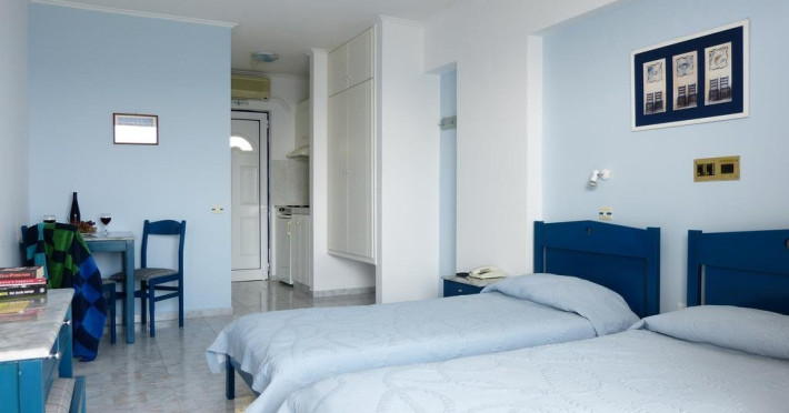 Descriere: Ostria ofera 18 studiouri si 4 apartamente, fiecare cu balcon spatios. Localizare: Ostria se afla la 8 km de aeroport si la 13 km de orasul Chios. Facilitati hotel: receptie, piscina, terasa, sezlonguri, wi-fi, parcare, gradina, seif, patut la cerere Dotari camere: telefon, TV, aer conditionat, balcon privat cu vedere la mare, chicineta, frigider, baie cu cada sau dus Website: http://ostriastudios.gr/en/