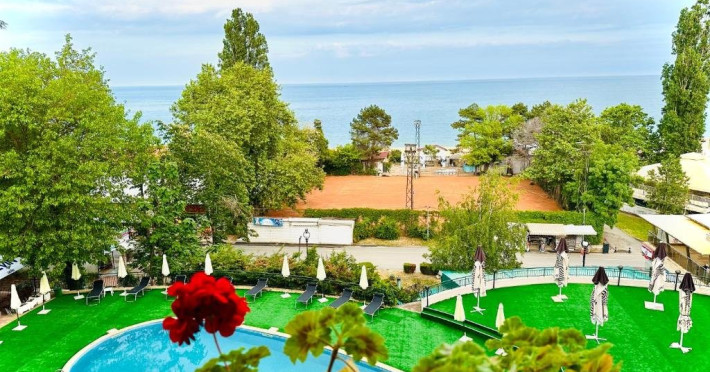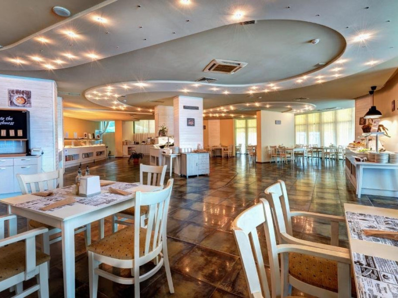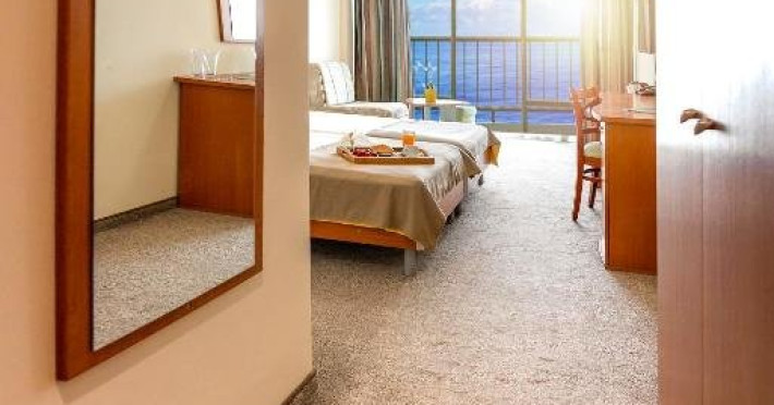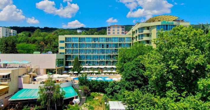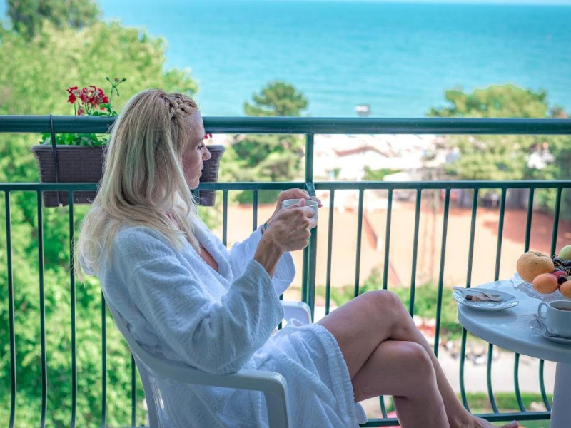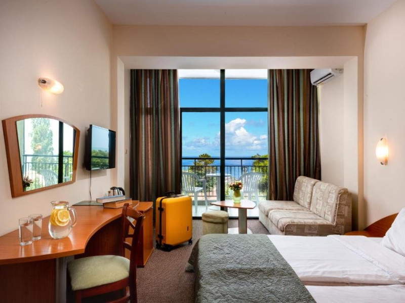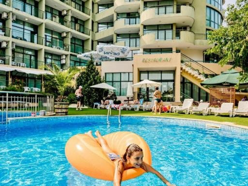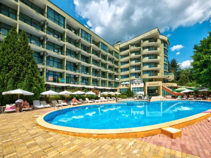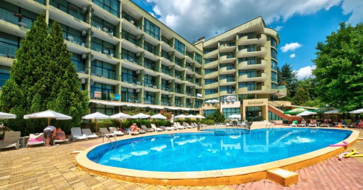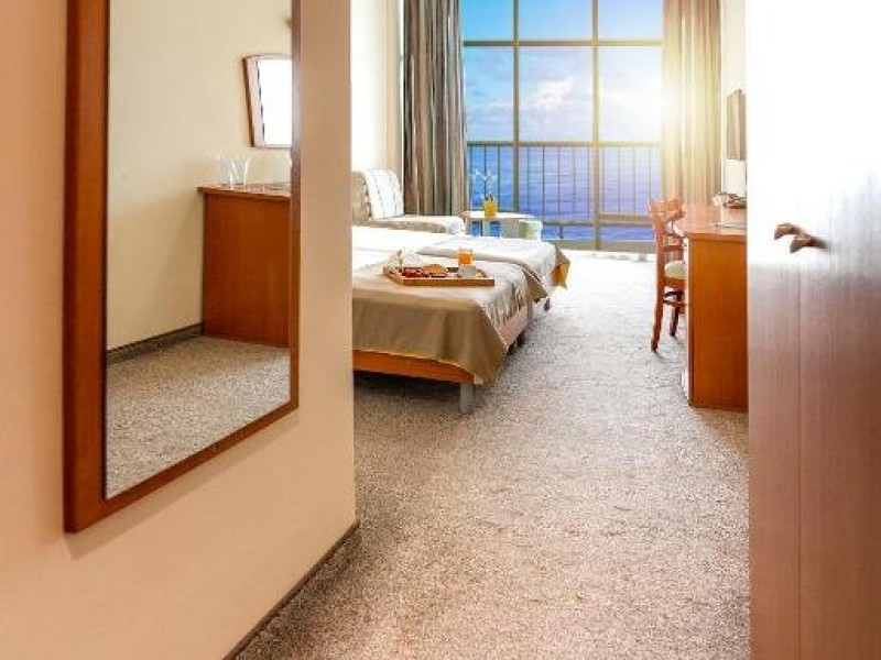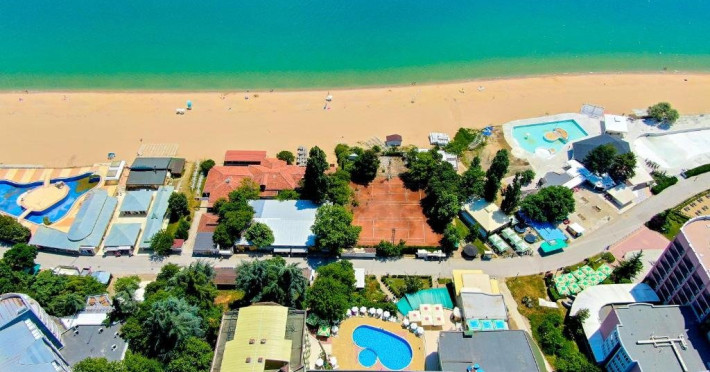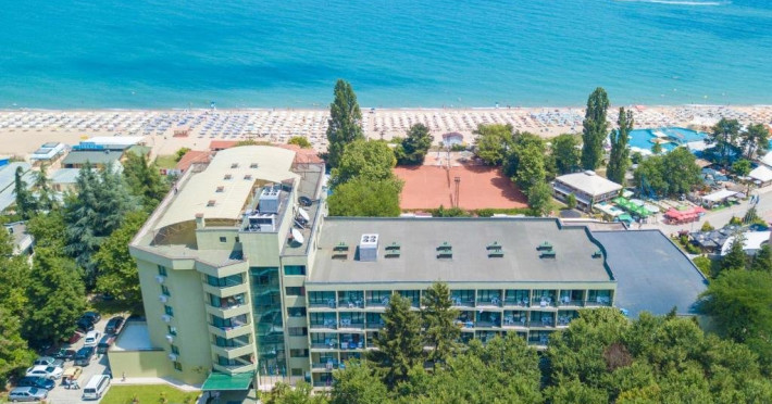 Localizare: hotelul se afla la 25 metri distanta fata de plaja. Informatii hotel: hotelul dispune de restaurant, lobby bar, bowling bar, piscina exterioara, piscina interioara, piscina pentru copii, loc de joaca pentru copii, birou de schimb valutar, rent a car, parcare, fitness, sauna, solar, masaj, bowling, biliard, sala de jocuri, sala de conferinte. Servicii masa: All Inclusive. Servicii cazare: Camerele duble (22 mp.) sunt dotate cu doua paturi single, balcon, baie cu dus, telefon, televizor, mini bar, podea acoperita cu mocheta, uscator de par. Sport si activitati: Gratuit: accesul la piscina exterioara, sezlonguri si umbrele la piscina exterioara. Sezlonguri si umbrela gratuite pe plaja pentru camerele duble sea view. Animalele de companie nu sunt acceptate. Parcare contracost - 15 lv/zi. Grad maxim ocupare camere: In camera single - 1 adult; in camera dubla promo - 2 adulti + 1 copiol; in camera dubla park view - 2 adulti + 1 copil sau 3 adulti; in camera dubla sea view - 2 adulti + 2 copii sau 3 adulti; in suite - 2 adulti + 2 copii/3 adulti + 1 copil Observatii: - Taxa statiune si servicii: 7 euro/persoana/sejur - 1 copil 2 - 11,99 ani cazat cu 2 adulti in toate tipurile de camere - 100% reducere - 2 copii 2-11,99 ani cazati cu 2 adulti in Dubla Sea View - 100% reducere ambii copii pana la 16.06 si incepand cu 10.09; 100 % reducere primul copil , 50 % reducere al 2-lea copil pentru sejur in perioada 17.06-09.09.2018 - 2 copii 2-11,99 ani cazati cu 2 adulti in Suita - 100 % reducere ambii copii - 1 copil 2 - 11,99 ani cazat cu 1 adult in Dubla - 30% reducere in perioada 17.06-09.09.2018 si 50% reducere pentru sejur pana la 16.06.2018 si incepand cu 10.09.2018 - 2 copii 2 - 11,99 ani cazati cu 1 adult in Dubla - 50% reducere fiecare - adult cazat in pat suplimentar in Dubla - 30% reducere - al 2-lea adult cazat in pat suplimentar in Suita - 50 % reducere