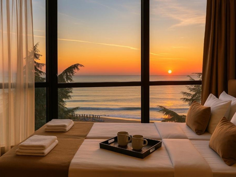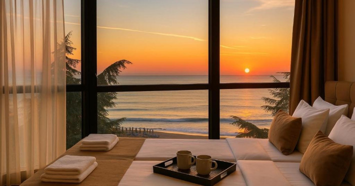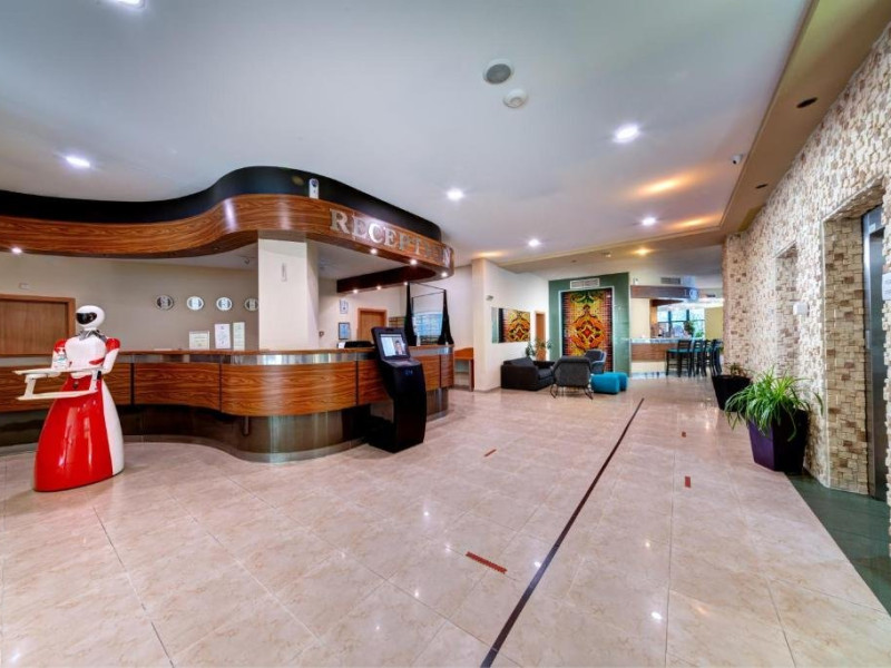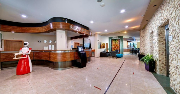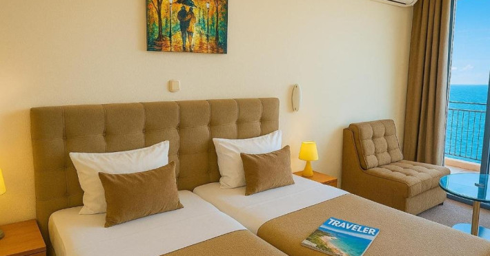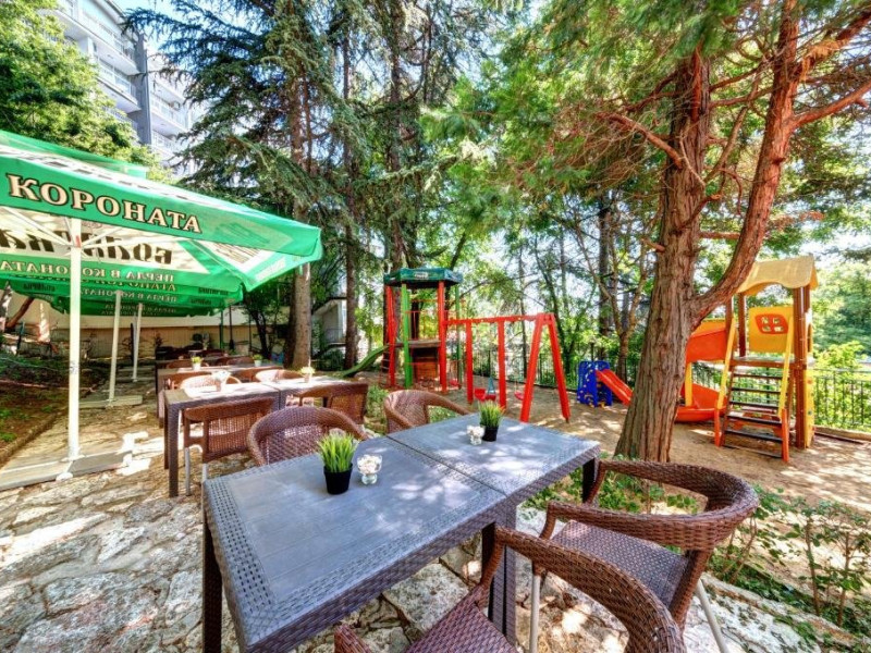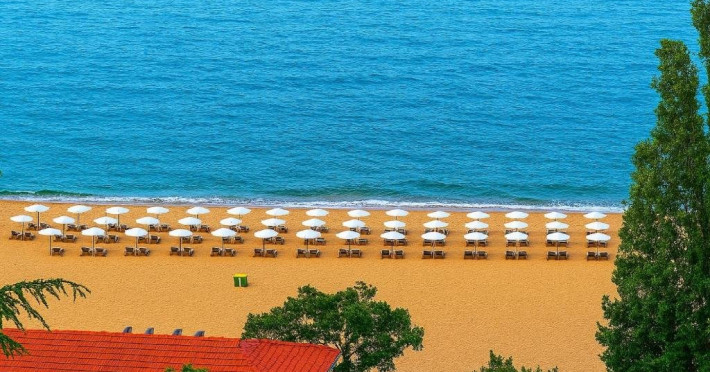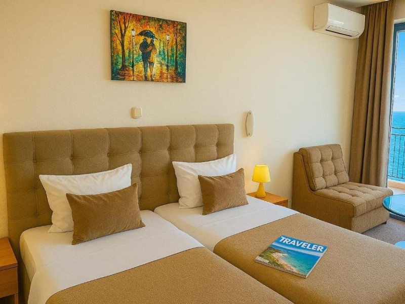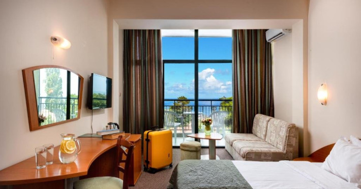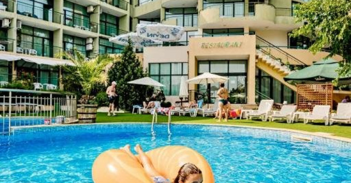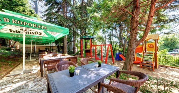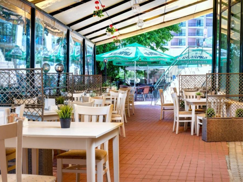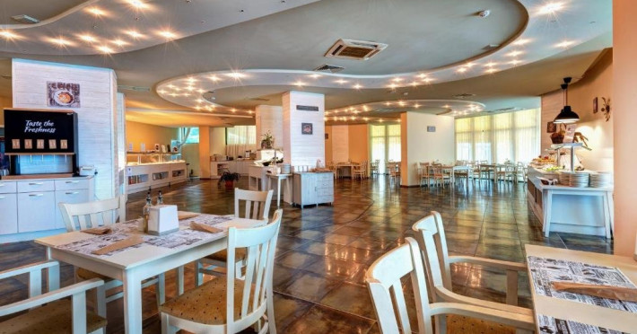 Localizare: hotelul se afla la 25 metri distanta fata de plaja. Informatii hotel: hotelul dispune de restaurant, lobby bar, bowling bar, piscina exterioara, piscina interioara, piscina pentru copii, loc de joaca pentru copii, birou de schimb valutar, rent a car, parcare, fitness, sauna, solar, masaj, bowling, biliard, sala de jocuri, sala de conferinte. Servicii masa: All Inclusive. Servicii cazare: Camerele duble (22 mp.) sunt dotate cu doua paturi single, balcon, baie cu dus, telefon, televizor, mini bar, podea acoperita cu mocheta, uscator de par. Sport si activitati: Gratuit: accesul la piscina exterioara, sezlonguri si umbrele la piscina exterioara. Sezlonguri si umbrela gratuite pe plaja pentru camerele duble sea view. Animalele de companie nu sunt acceptate. Parcare contracost - 15 lv/zi. Grad maxim ocupare camere: In camera single - 1 adult; in camera dubla promo - 2 adulti + 1 copiol; in camera dubla park view - 2 adulti + 1 copil sau 3 adulti; in camera dubla sea view - 2 adulti + 2 copii sau 3 adulti; in suite - 2 adulti + 2 copii/3 adulti + 1 copil Observatii: - Taxa statiune si servicii: 7 euro/persoana/sejur - 1 copil 2 - 11,99 ani cazat cu 2 adulti in toate tipurile de camere - 100% reducere - 2 copii 2-11,99 ani cazati cu 2 adulti in Dubla Sea View - 100% reducere ambii copii pana la 16.06 si incepand cu 10.09; 100 % reducere primul copil , 50 % reducere al 2-lea copil pentru sejur in perioada 17.06-09.09.2018 - 2 copii 2-11,99 ani cazati cu 2 adulti in Suita - 100 % reducere ambii copii - 1 copil 2 - 11,99 ani cazat cu 1 adult in Dubla - 30% reducere in perioada 17.06-09.09.2018 si 50% reducere pentru sejur pana la 16.06.2018 si incepand cu 10.09.2018 - 2 copii 2 - 11,99 ani cazati cu 1 adult in Dubla - 50% reducere fiecare - adult cazat in pat suplimentar in Dubla - 30% reducere - al 2-lea adult cazat in pat suplimentar in Suita - 50 % reducere