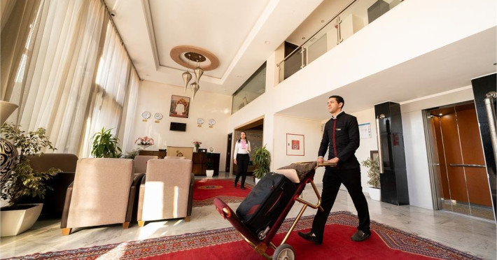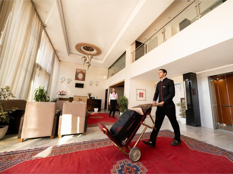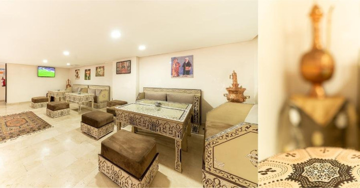 Facilitati hotel: Hotelul Palm Menara pune la dispozitia clientilor sai receptie 24 de ore, wifi gratuit in toate zonele publice, parcare, camera pentru bagaje, seif, schimb valutar, serviciu de spalatorie, asistenta medicala (la cerere), magazine, terasa, galerie de arta contemporana, piscina, restaurant care ofera preparate din bucataria traditionala si internationala, cafenea, room service.