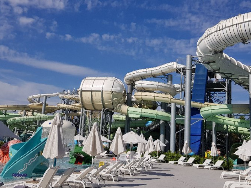Facilitati hotel: Hotelul pune la dispozitia oaspetilor numeroase restaurante si baruri, piscina exterioara, sezlonguri si umbrele, aqua park, centru spa, fitness, spectacole, programe de divertisment.