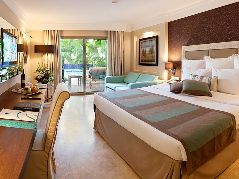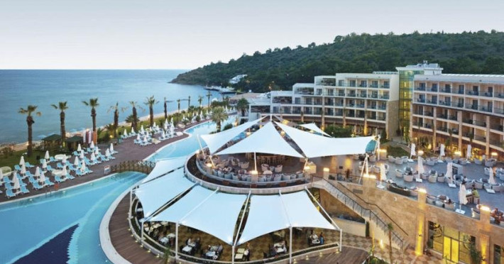 Hotelul Paloma Pasha Resort 5* Este situat pe malul marii, la 50 km de aeroportul orasului Izmir, la 35 km de orasul Kusadasi si la 1 km de orasul Ozdere. Hotelul Paloma Pasha Resort 5* a fost construit in anul 2010, are o suprafata totala de 35 000 mp. Recomandat atat pentru vacante relaxante cu familia, cat si tinerilor. Facilitati Hotelul Paloma Pasha Resort 5* ofera oaspetilor sai restaurant principal, micul dejun a la carte (din produse BIO, dispun de certificare; contra cost), 4 restaurante a la carte (international, turcesc si pescaresc - cu rezervare, o masa/ sejur/ la un restaurant - gratuit; barbecue - contra cost), 6 baruri (unul deschis 24 de ore), 2 piscine exterioare, 1 piscina interioara, 3 tobogane, cabinet medical, centru SPA & Wellness, coafor, lant de magazine, spalatorie si 6 sali de conferinta (450 persoane). Gratuit: baie turceasca, sauna, sala de fitness, aerobic, aqua-aerobic, volei pe plaja, baschet, mini-fotbal, teren de tenis cu suprafata sintetica, tenis de masa, darts, bocce, program de animatie, muzica live, discoteca, internet-cafe si internet Wi-Fi (in lobby). Contra cost: masaj, inchirierea echipamentului de tenis, tir cu arcul, windsurfing (cu licenta) si sporturi nautice. Copii: bufet, piscina, loc de joaca, mini-club (4-12 ani) si bona (contra cost). Plaja: 2 plaje proprii, nisip. La piscina si pe plaja: umbrele, sezlonguri - gratuit. Saltele - nu (sezlonguri moi). Prosoape de plaja - gratuit. Terrace Bar, Bar pe plaja, Jazz Bar, Club si disco Camere Hotelul Paloma Pasha Resort 5* este compus din 2 cladiri cu 5 nivele: - 228 standard room (2 camere pentru persoane cu dizabilitati, max. 2+1 pers., 33 mp), - 20 terrace suite room cu o camera (mobila tapitata si king size bed, jacuzzi la terasa, room service si internet de mare viteza - gratuit, vedere totala la mare, halat, papuci, max. 2 pers., 70 mp), - 20 family suite cu 2 camere (living, dormitor cu usa, max. 2+2 pers., 65 mp). Camerele sunt dotate cu baie cu dus, foehn, aer conditionat centralizat, televizor, telefon, minibar (bauturile racoritoare si berea se suplimenteaza zilnic - gratuit), seif (gratuit), ceainic electric (set de ceai si cafea), balcon, pardoseala - gresie de ceramica, room service (24 ore, contra cost) si internet Wi-Fi (contra cost). Curatenia in camere se efectueaza zilnic, iar schimbarea lenjeriei - de 2 ori pe saptamana. Masa Ultra All Inclusive: In toate barurile sunt servite bauturi locale si de import si sunt deschise 24 ore. Se servesc bauturi branduite de import, vin organic in toate restaurantele a la carte, stand cu cafea turceasca traditionala. Pagina web: http://www.palomahotels.com/en/hotels/paloma-pasha-resort