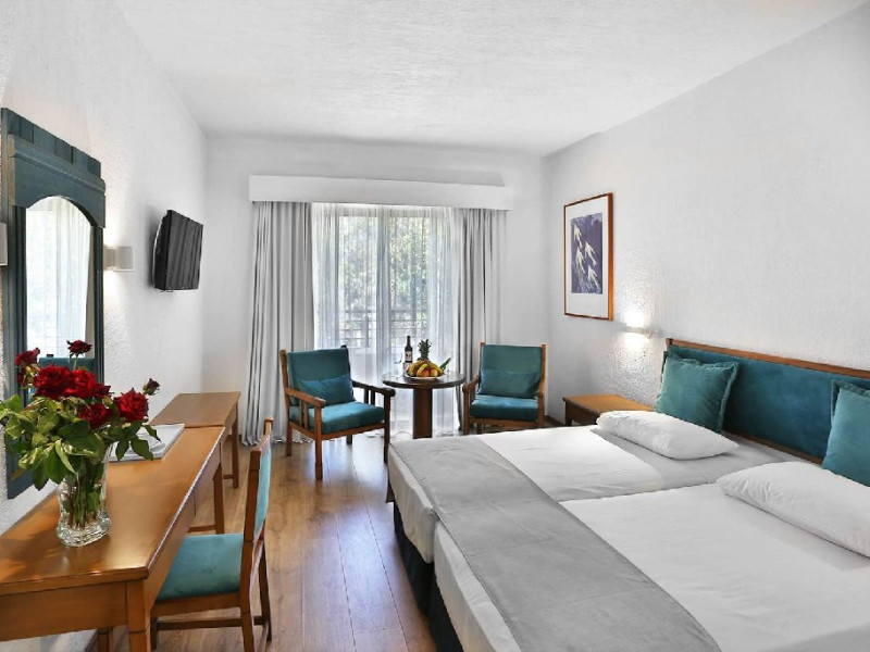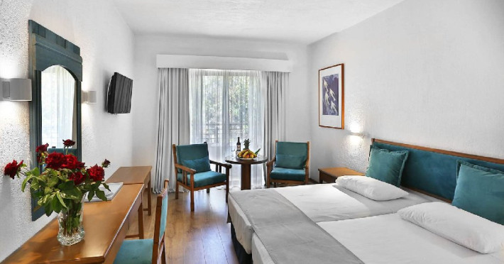 Descriere: Amplasat linistit la doar 300 de metri de plaja cu nisip, Paphos Gardens Holiday Resort dispare in vegetatia luxurianta. Situat langa drumul principal de pe litoral si la doar un hop de la plaja, , magazine, divertisment de seara si multe altele, Paphos Gardens Holiday Resort combina self-catering-ul cu cazarea la hotel, oferind toate serviciile necesare si o varietate de activitati zilnice care potrivesc fiecarui oaspete. Locatie : Aeroportul international Paphos este la o distanta 11 km. Dotari camera: Toate tipurile de cazare se au un balcon, cu vedere la Marea Mediterana sau la munte. Toate au aer conditionat, TV prin satelit si baie cu uscator de par. Unele au si bucatarie sau chicineta cu cuptor cu microunde, frigider si masa. Facilitati hotel : Receptie 24 de ore, 2 piscine exterioare, o piscina interioara, bar langa piscina, spa, sala de gimnastica, sauna, jacuzzi,wifi gratuity, restaurant, club pentru copii (mai octombrie), zona de joaca pentru copii, teren de tenis, sala de sedinte, seif in camera, minimarket, spalatorie automata.