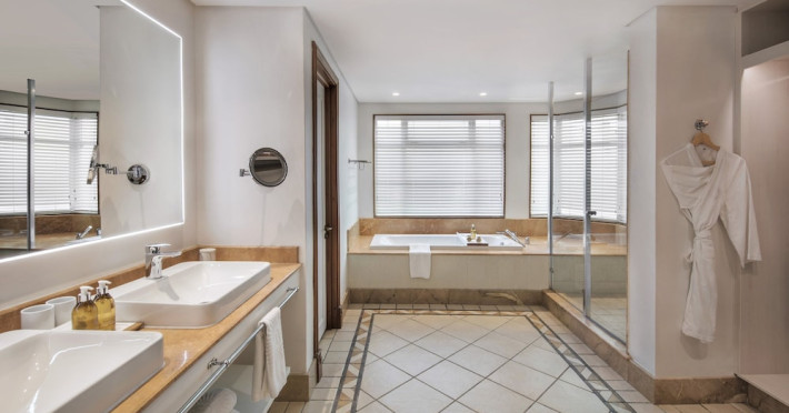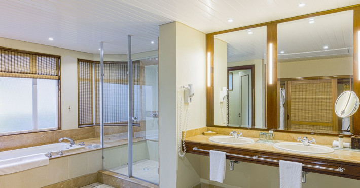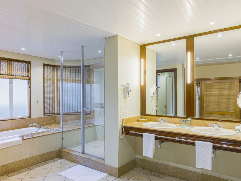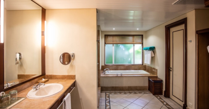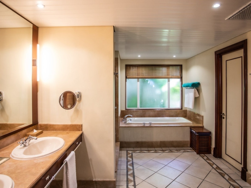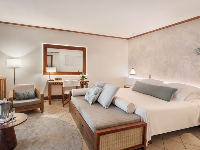 Located on the Le Morne Peninsula in Mauritius, Paradis Beachcomber Golf Resort & Spa offers a beachfront experience with access to an 18-hole par 72 championship golf course. Guests can enjoy a range of water and land sports, including water skiing, snorkeling, and windsurfing. Diving sessions, tennis, and beach volleyball are also available. The resort features a large pool and multiple restaurants, including Le Brabant serving international cuisine, La Palma offering Italian dishes, Blue Marlin specializing in seafood, and La Ravanne with Creole specialties. Guests also have access to restaurants and facilities at the nearby Dinarobin Beachcomber Golf Resort & Spa. The spa offers massages, body treatments, and facials. Complimentary wireless internet access is available. Rooms are air-conditioned and feature minibars, LCD televisions, and private furnished balconies or patios with Indian Ocean views. Private bathrooms include separate bathtubs and showers, complimentary toiletries, and hair dryers. The resort provides complimentary newspapers in the lobby, dry cleaning/laundry services, and a 24-hour front desk. A kids club with a pool and baby care room is available for children. The resort is approximately 55 km from Sir Seewoosagur Ramgoolam International Airport. Nearby attractions include Black River Gorges National Park.