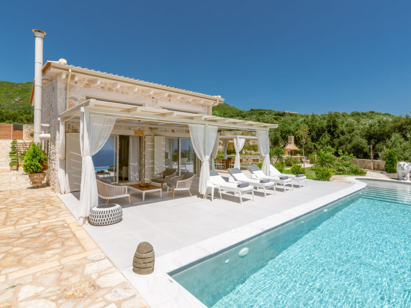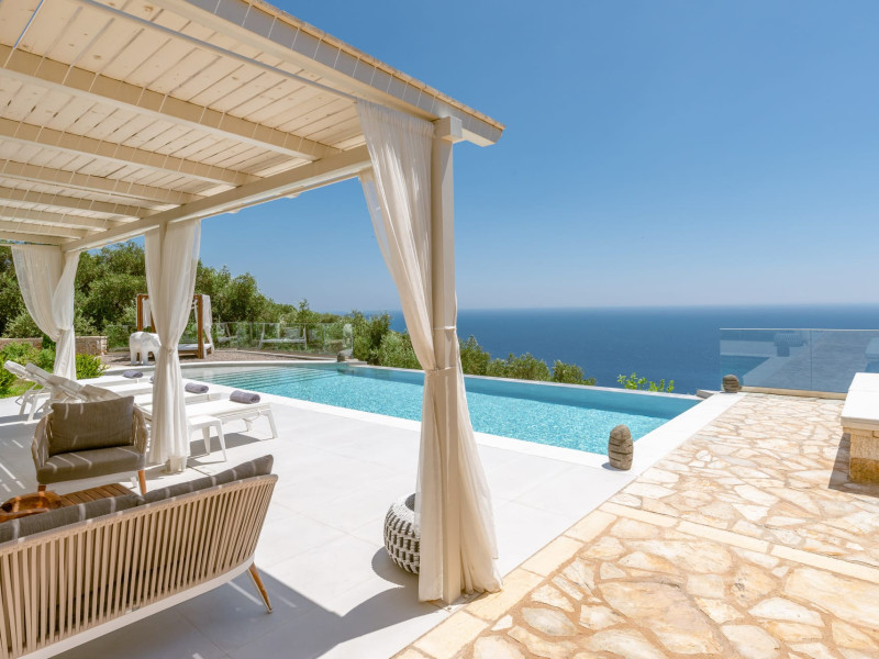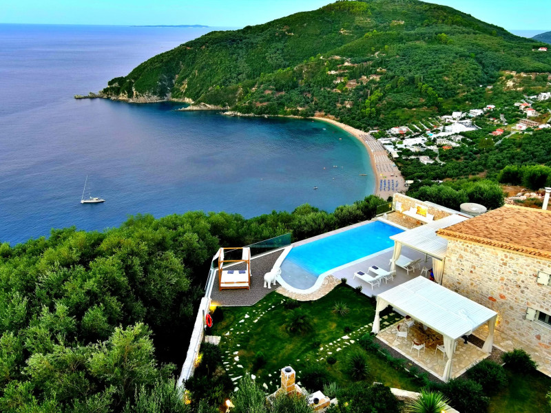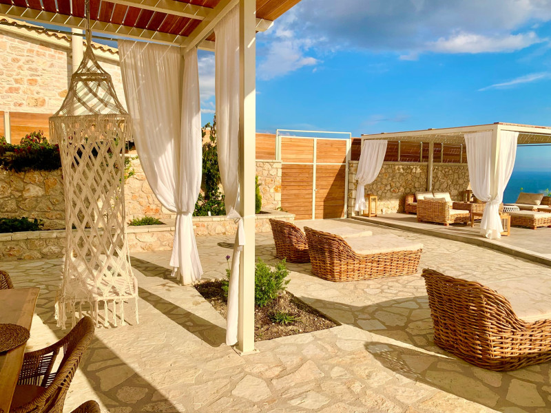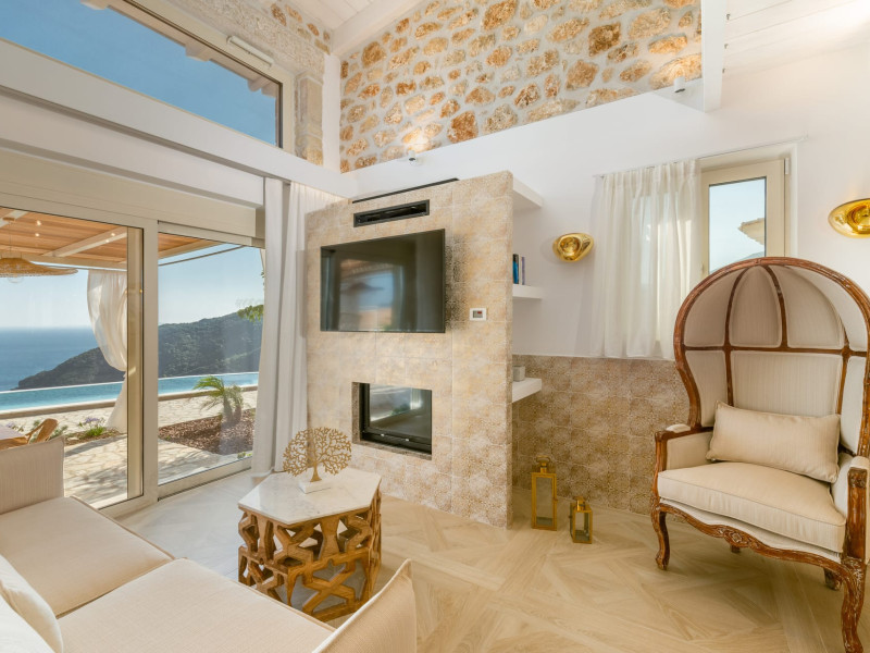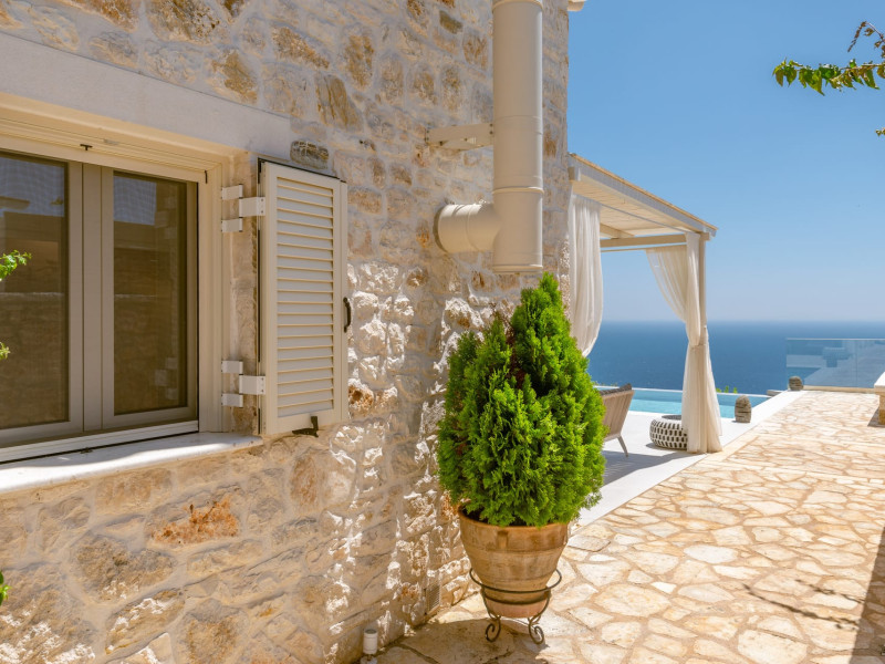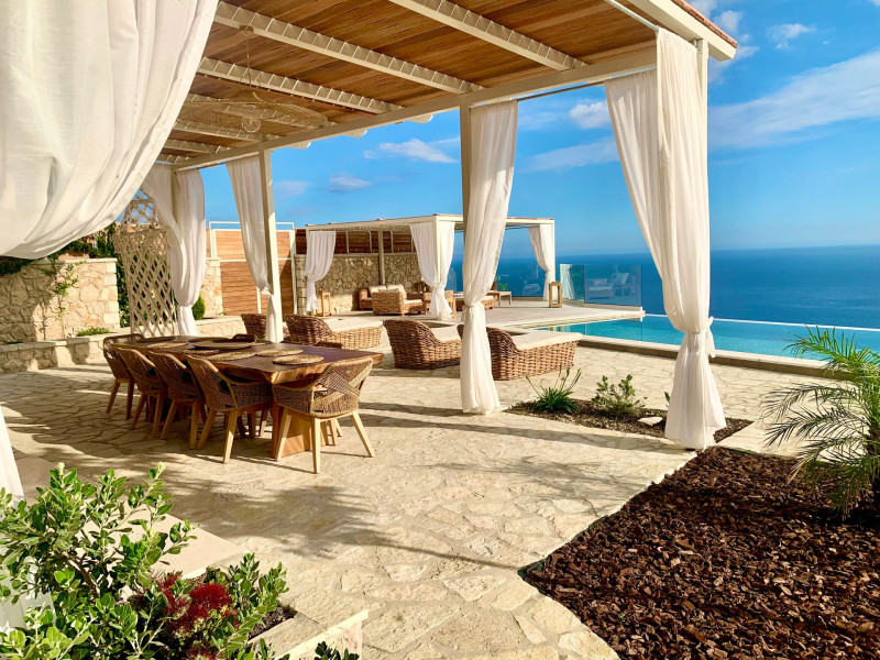 The outdoor spaces overlook the Ionian sea and Lichnos bay are suitable for gatherings under Parga's sky. Private yard with barbecue and dining area to enjoy. A large infinity swimming pool with incredible panoramic breathtaking views will captivate you on the premises.