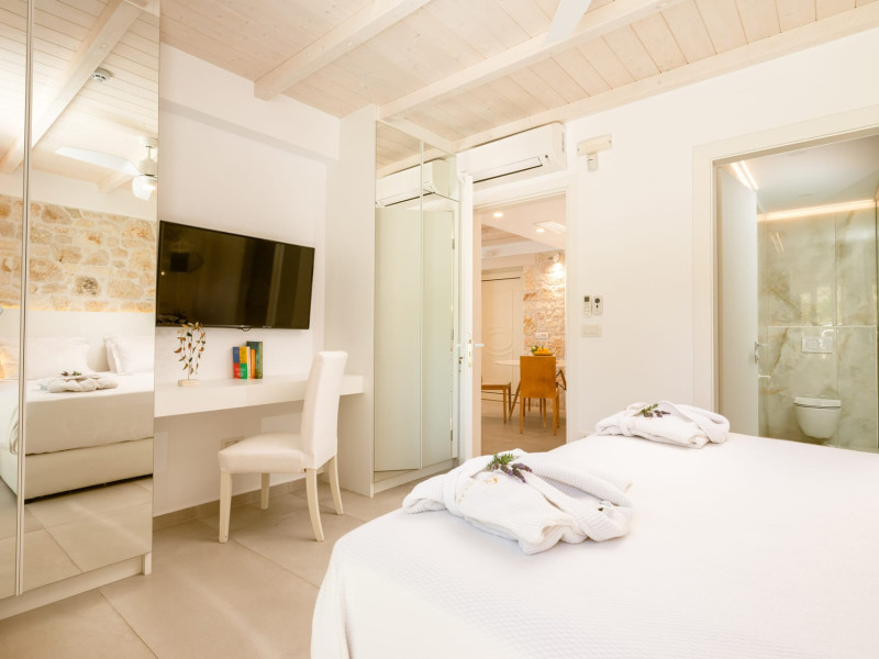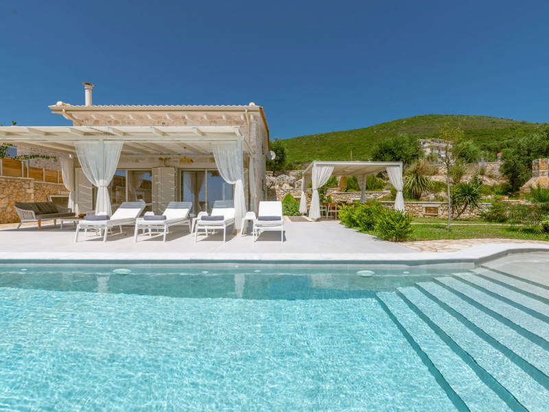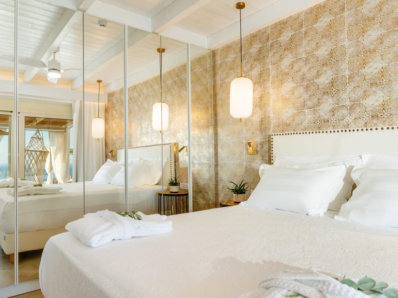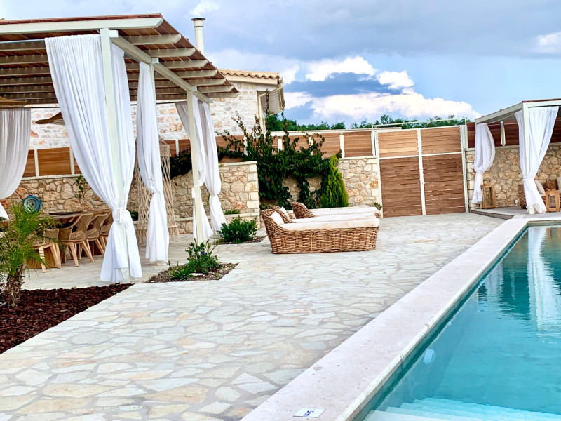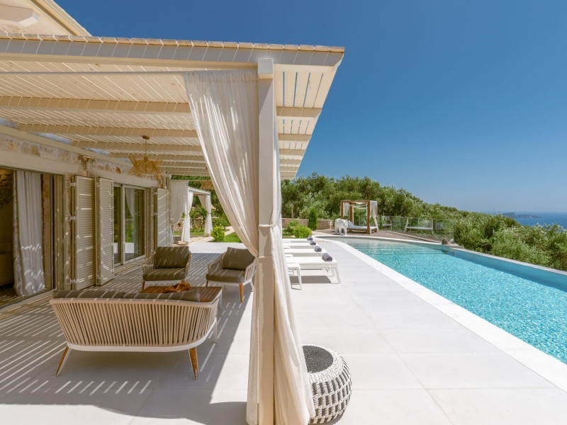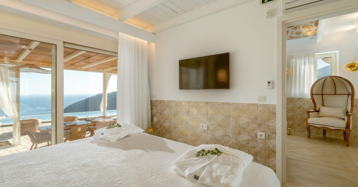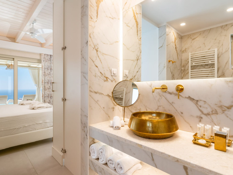 The outdoor spaces overlook the Ionian sea and Lichnos bay are suitable for gatherings under Parga's sky. Private yard with barbecue and dining area to enjoy. A large infinity swimming pool with incredible panoramic breathtaking views will captivate you on the premises.