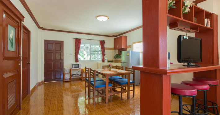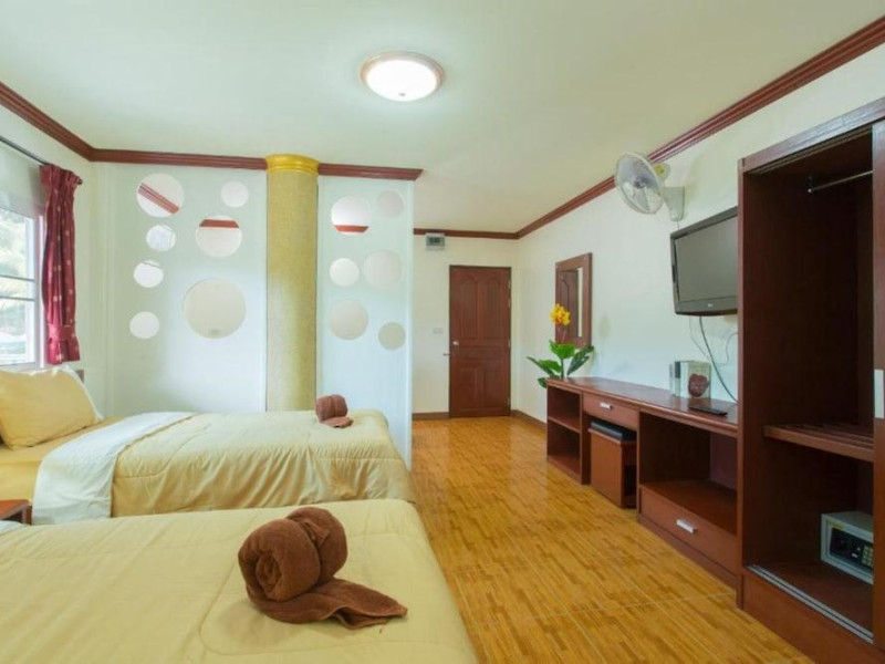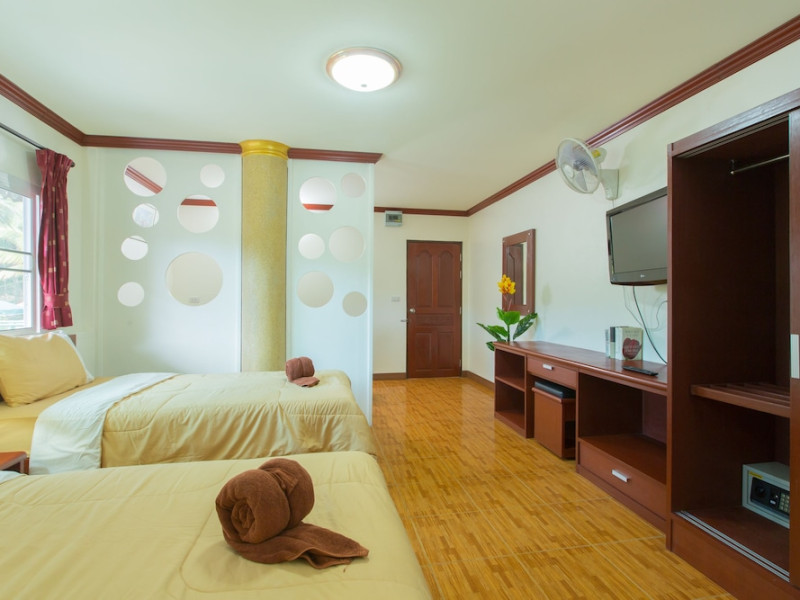 The hotel is located in a quiet hillside area of Patong, offering a peaceful retreat while still being close to Patong’s vibrant town center (3.5 km) and Patong Beach (3 km). The hotel location is within close proximity of Bangla Boxing Stadium (2.5 km) and Jungceylon Shopping Center (3.5 km). The hotel is best accessed via Phuket International Airport, which is 42 km away. Patong Rai Rom Yen Resort SHA offers room service, Wi-Fi in public places, a non-smoking property, shuttle services available for exploring Phuket, self-parking, daily housekeeping, safety deposit box at the front desk, and luggage storage. Guests can enjoy a 24-hour fitness center, children's pool, outdoor pool, bar/lounge area, restaurant (07:00 am to 22:00 pm), and 24-hour front desk. The 32 air-conditioned rooms feature private bathrooms with showers and complimentary toiletries, hairdryers, towels, refrigerators, TVs with cable/satellite channels, desks, in-room safety deposit boxes, kitchenettes, microwaves, kettles, and coffee/tea makers. The Patong Rai Rom Yen Resort SHA is a hotel. Located in Beach - Patong Beach area.