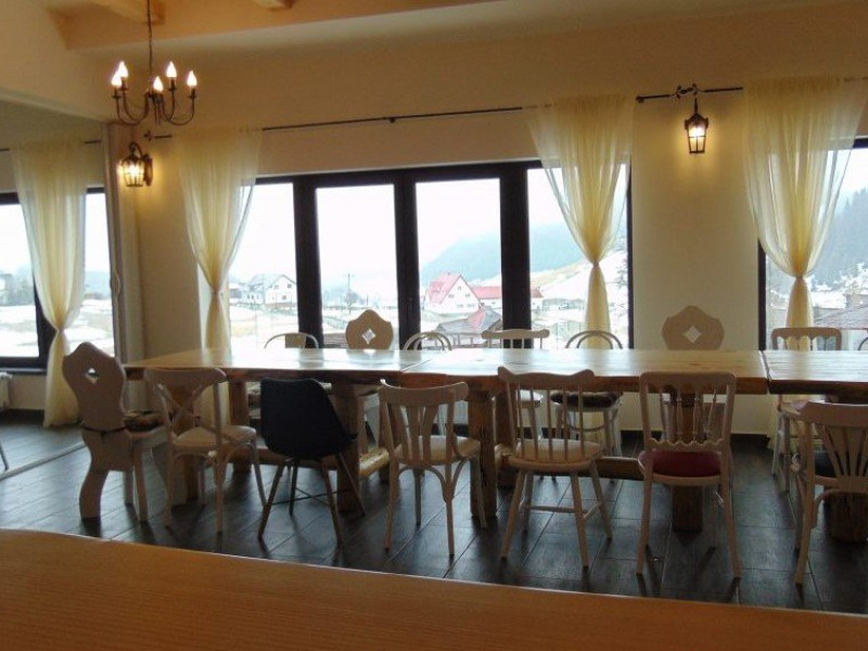Pensiunea Alex este formata din 12 camere duble, 2 camere triple si 2 camere de 4 locuri fiecare cu baie proprie. Pensiunea are living, sala de mese (restaurant), bucatarie, bar, o mica crama, spa si fitness, sala de jocuri, terasa.