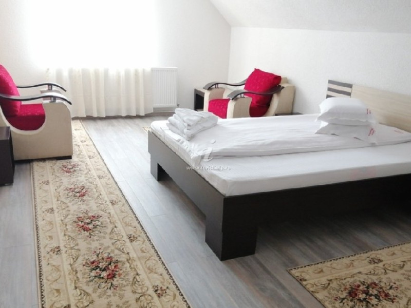 Va ofera cazare in 11 camere duble (2 adulti) si triple ( 2 adulti + 1 copil ), 1 suita, 1 apartament cu 2 camere. Camerele sunt dotate cu baie proprie, televizor, pat matrimonial, balcoane, sala pentru servit masa, bucatarie cu toate dotarile, curte de 2000 mp, loc de joaca pentru copii, panou de baschet, foisor, gratar, parcare, priveliste minunata, priz in parcare pentru autoturisme electrice. Deviza noastra este : Curatenie si Ambient placut!