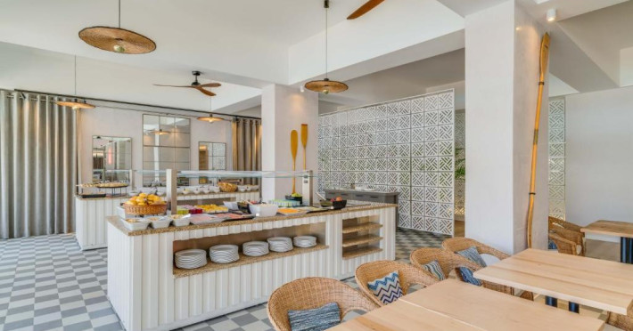 Dimineața, restaurantul Atlantic Gardens servește un mic dejun tip bufet cu fructe proaspete și produse de patiserie. Oaspeții se pot bucura de diverse tipuri de mese și meniuri la unul dintre cele 3 restaurante ale proprietății. Hotelul Pestana Delfim All Inclusive are două baruri la piscină care servesc băuturi răcoritoare.