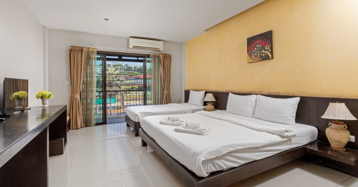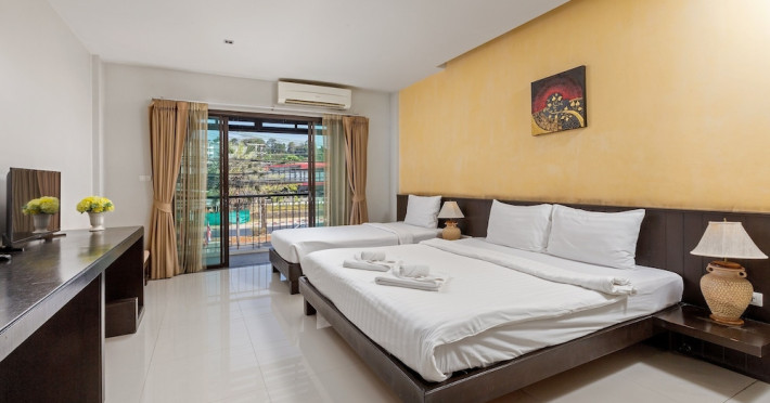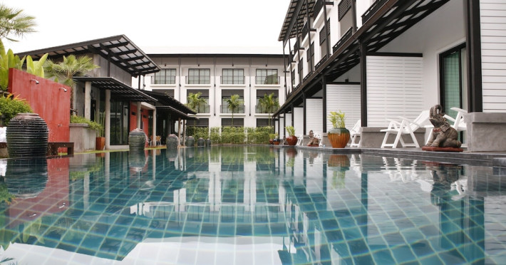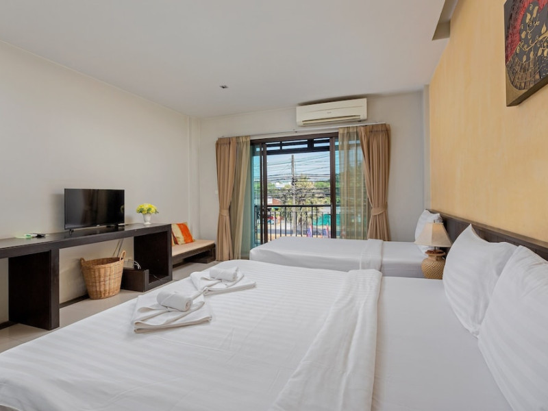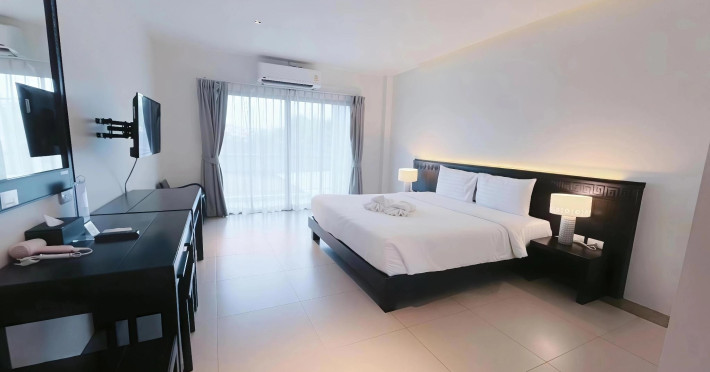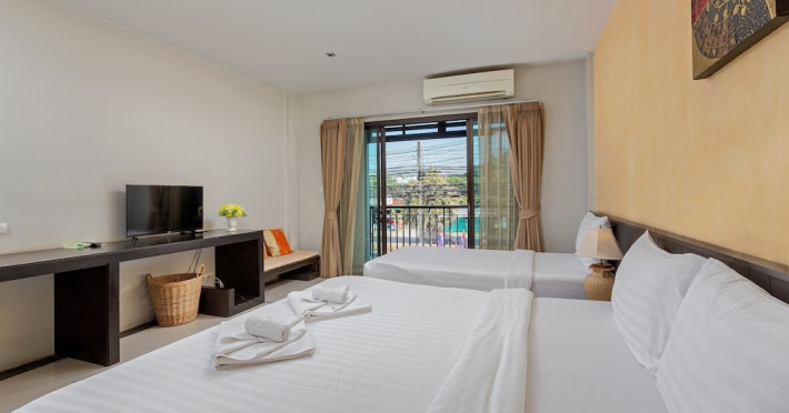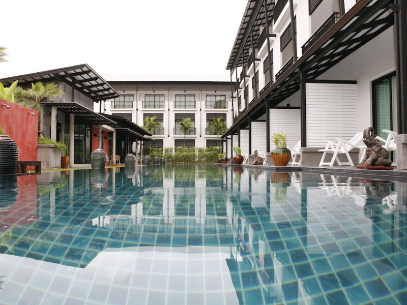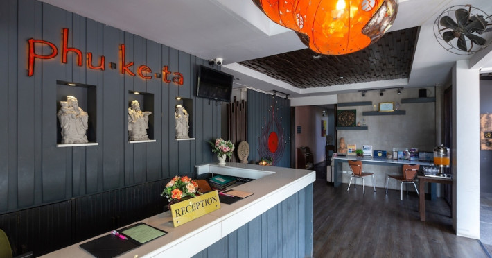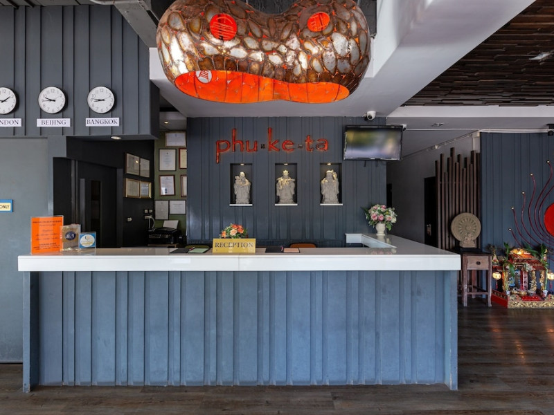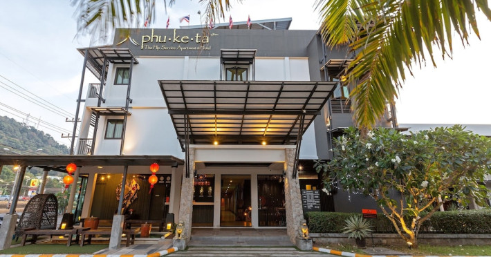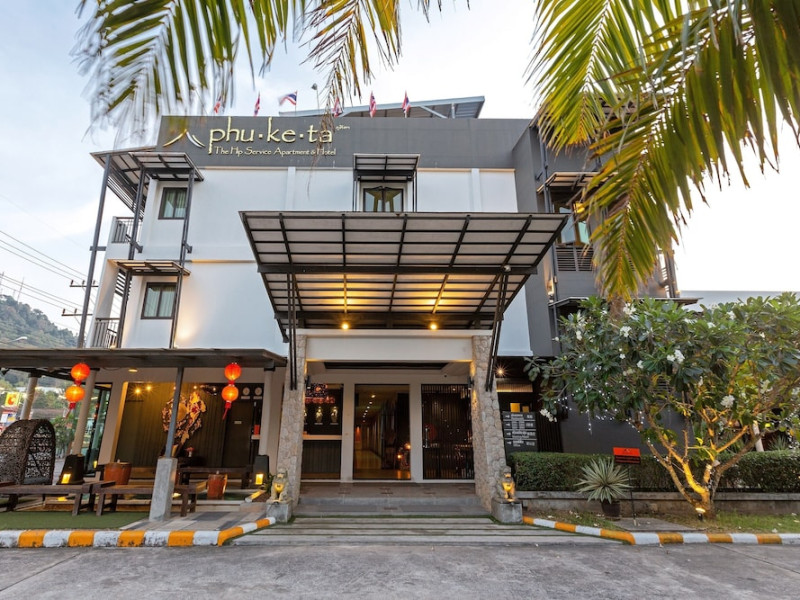 Phuketa Hotel - SHA Extra Plus is a modern, 3-story aparthotel located near Rajabhat Phuket University and a short drive from Phuket Town. It offers 57 air-conditioned rooms with complimentary Wi-Fi. Each room features a private bathroom with a shower, a flat-screen TV with cable, a minibar, a refrigerator, and tea/coffee making facilities. Some rooms include a balcony or terrace. The hotel features an outdoor saltwater swimming pool, a fitness center, a restaurant serving Thai, Chinese, and Phuket cuisine, and a bar. An American buffet breakfast is available, and lunch and dinner are offered à la carte. Room service is also available. The hotel provides a 24-hour front desk, luggage storage, tour/ticket assistance, conference facilities, and free self-parking. Airport shuttle service is available for a surcharge. The hotel is a non-smoking property with designated smoking areas. Nearby attractions include Phuket Rajabhat University, Bangkok Hospital Phuket, and Chillva Market. Phuket International Airport is approximately 27 km away. The Phu-ke-ta The Hip Serviced Apartment and Hotel is a hotel.