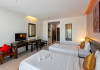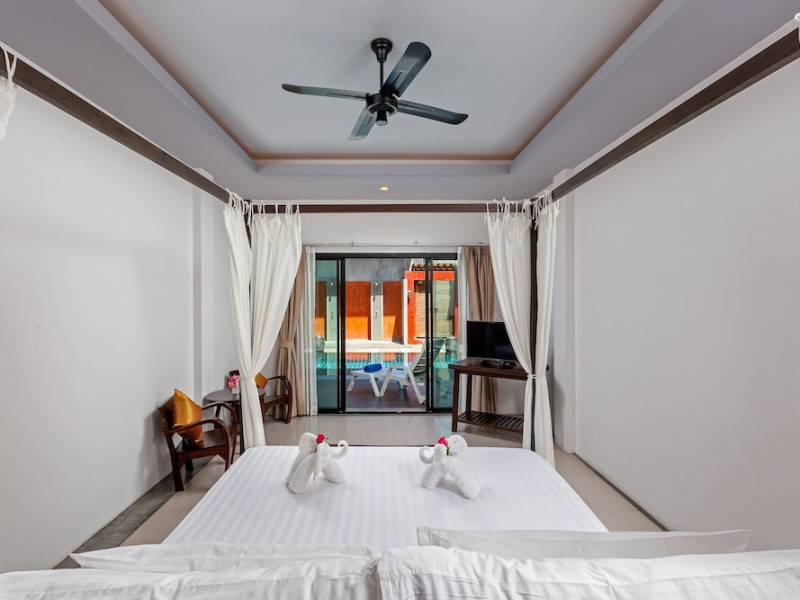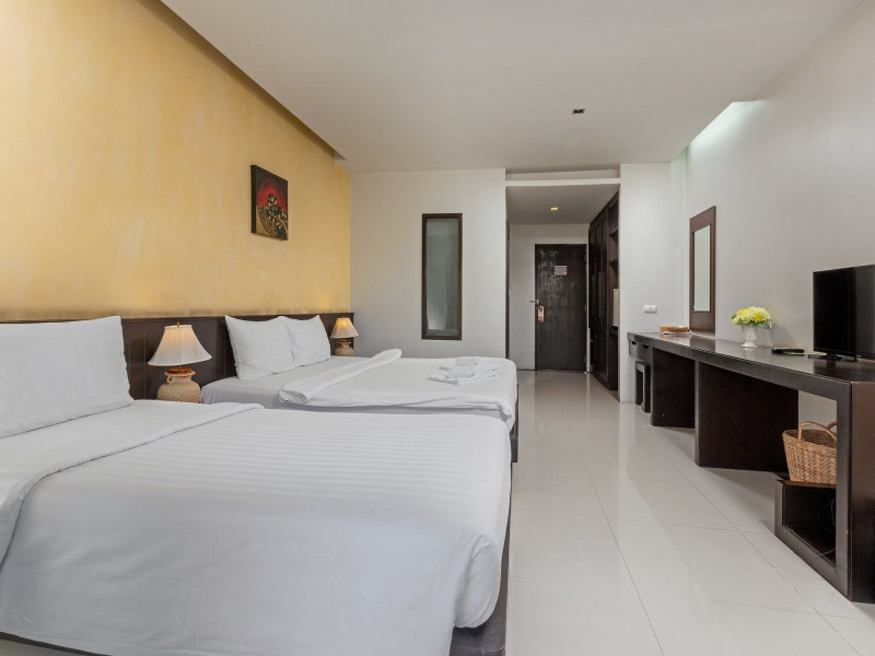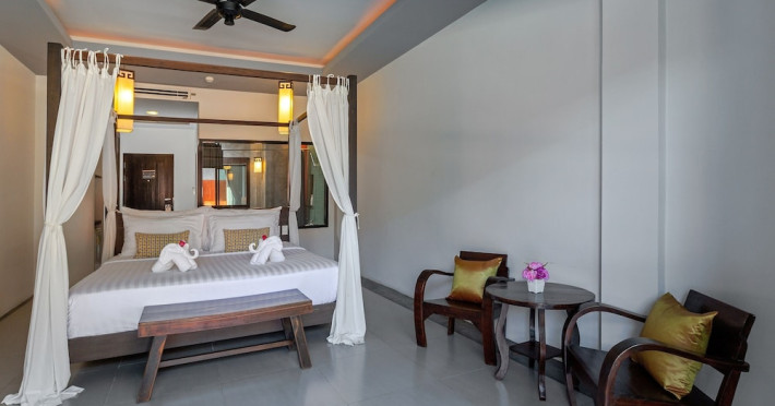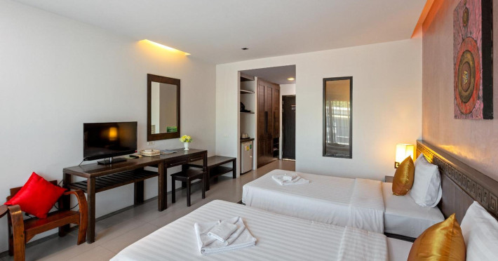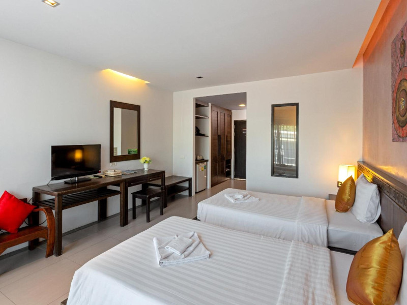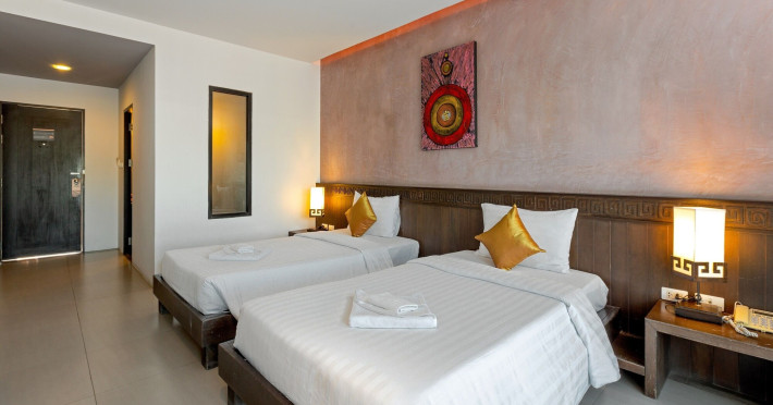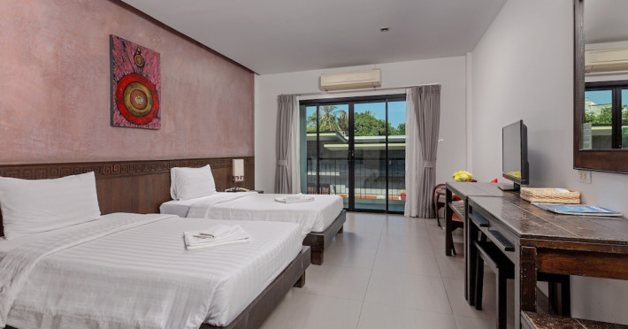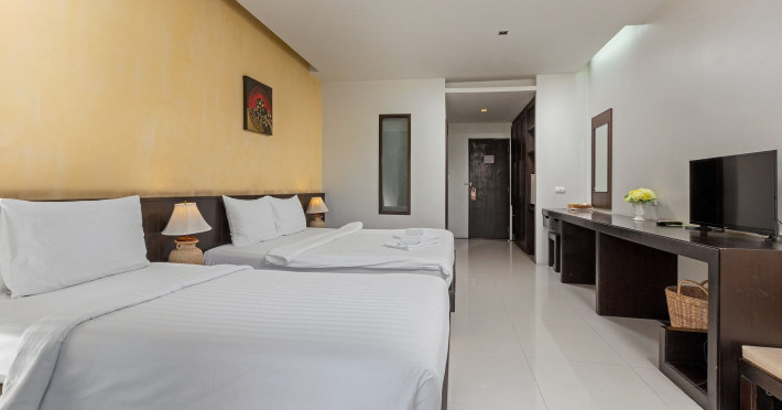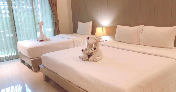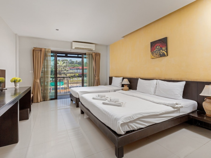 Phuketa Hotel - SHA Extra Plus is a modern, 3-story aparthotel located near Rajabhat Phuket University and a short drive from Phuket Town. It offers 57 air-conditioned rooms with complimentary Wi-Fi. Each room features a private bathroom with a shower, a flat-screen TV with cable, a minibar, a refrigerator, and tea/coffee making facilities. Some rooms include a balcony or terrace. The hotel features an outdoor saltwater swimming pool, a fitness center, a restaurant serving Thai, Chinese, and Phuket cuisine, and a bar. An American buffet breakfast is available, and lunch and dinner are offered à la carte. Room service is also available. The hotel provides a 24-hour front desk, luggage storage, tour/ticket assistance, conference facilities, and free self-parking. Airport shuttle service is available for a surcharge. The hotel is a non-smoking property with designated smoking areas. Nearby attractions include Phuket Rajabhat University, Bangkok Hospital Phuket, and Chillva Market. Phuket International Airport is approximately 27 km away. The Phu-ke-ta The Hip Serviced Apartment and Hotel is a hotel.