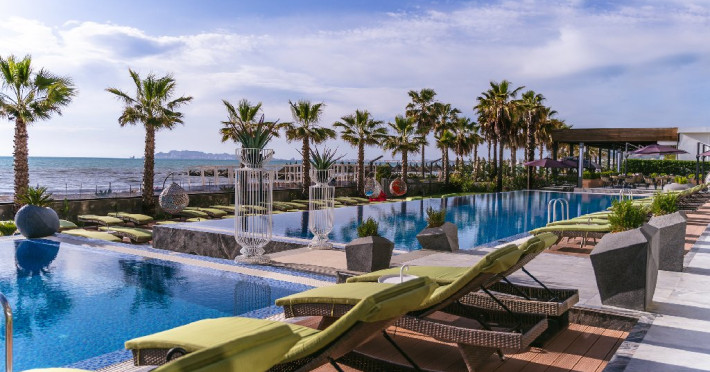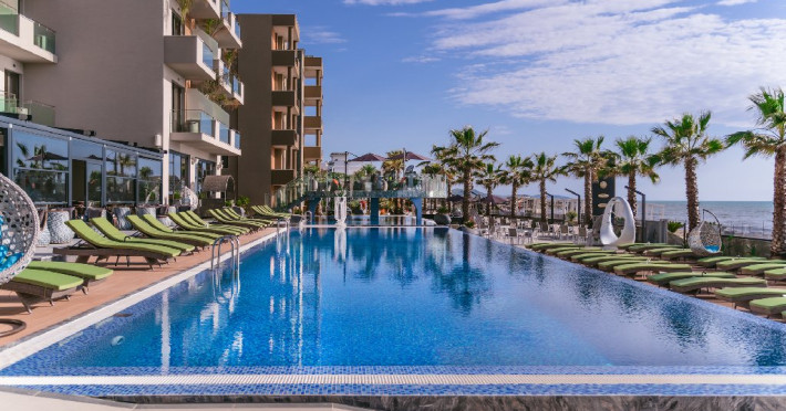 Localizare: Hotelul Pinea Resort & Spa este situat in apropierea unei plaje private cu nisip. Orasul vechi este la aproximativ 20 km distanta. Facilitati hotel: Hotelul pune la dispozitia clientilor receptie deschisa non stop, lobby bar, wifi, lift, parcare (in functie de disponibilitate), gradina, piscina exterioara si piscina interioara, loc de joaca. Plaja este supravegheata de salvamar si pune la dispozitia clientilor sezlonguri, umbrele, prosoape si beach bar. Dotari camere: Camerele sunt dotate cu telefon, wifi, TV, balcon, uscator de par. Site web: https://pineahotel.com/