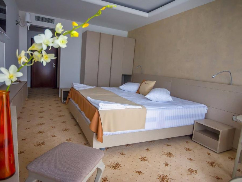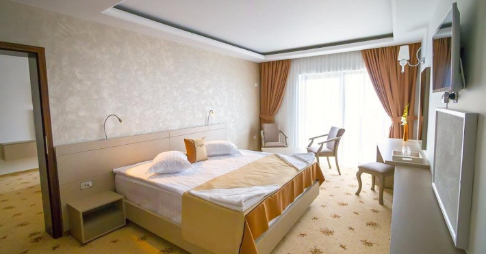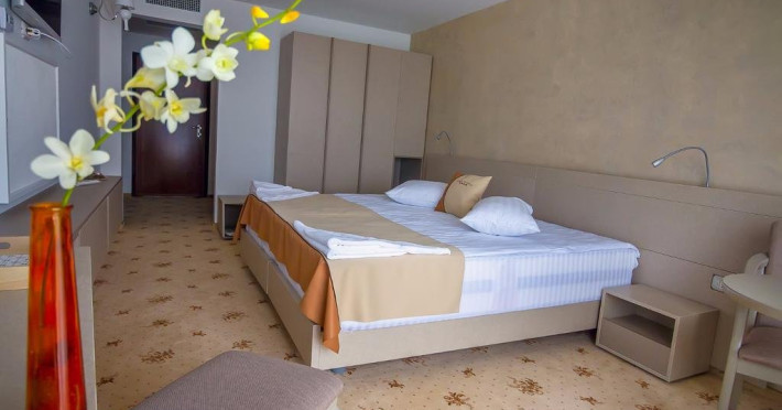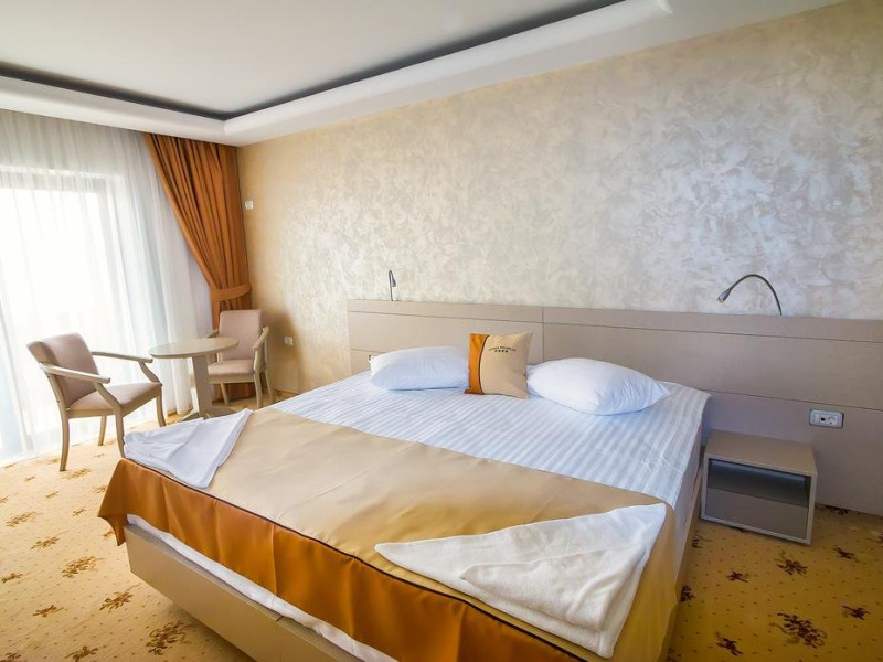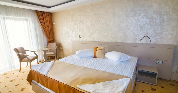 Cu o minunata vedere spre mare si lac , camerele spatioase si elegante au fost proiectate pentru a va oferi maximul de confort si a satisface nevoile individuale ale oaspetilor. Camera DUBLA DELUXE poate gazdui 2 adulti si un copil, pana in 10 ani, suprafata de 30mp, pat king size, pardoseala mocheta, wifi, vedere panoramica spre mare si lac, balcon sau terasa, seif, smart TV, telefon, minibar alimentat zilnic cu apa minerala si apa plata gratuit , baie cu dus, articole de toaleta gratuite, uscator de par, halate de baie si papuci. Capacitatea maxima de paturi suplimetare intr-o camera este de 1. SUITA CU 1 DORMITOR este compusa din 1 living , dotat cu canapea extesibila, dormitor cu pat king size, 1 baie. Suprafata de 59 mp, pat king size, pardoseala mocheta, wifi, vedere panoramica spre mare si lac, balcon sau terasa, seif, smart TV, telefon, minibar alimentat zilnic cu apa minerala si apa plata gratuit , baie cu dus, articole de toaleta gratuite, uscator de par, halate de baie si papuci. Poate gazdui 2 adulti si 2 copii, pana in 14 ani Capacitatea maxima de paturi suplimetare intr-o camera este de 1.